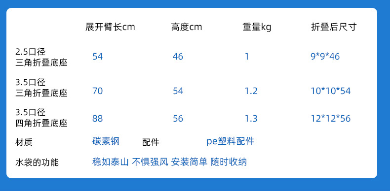 대형 야외 양산 대형 스탠드 우산 물 주입 태양 우산 기지 광고 우산 기지 플라스틱 3 자 우산 기지