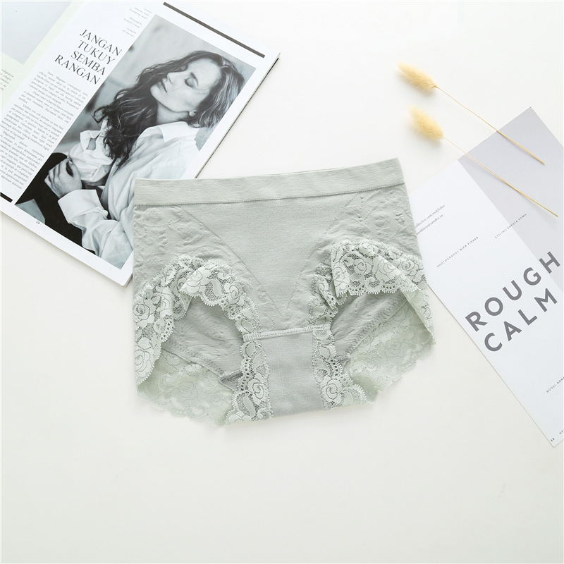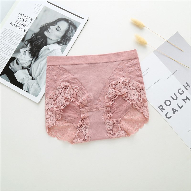 여성용 대나무 섬유 통기성 원활한 팬티 일본식 레이스 여성 속옷 배꼽 엉덩이 리프팅 반바지 얇은