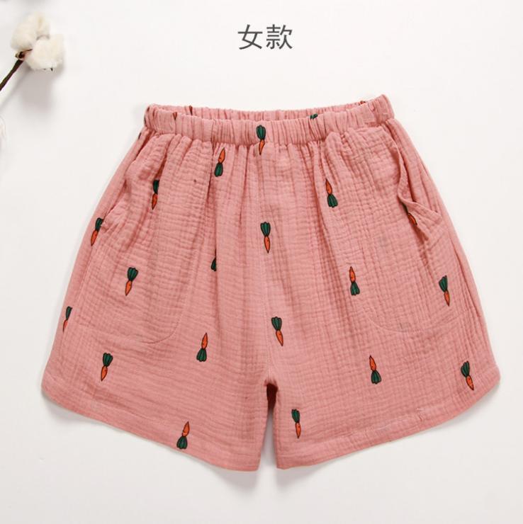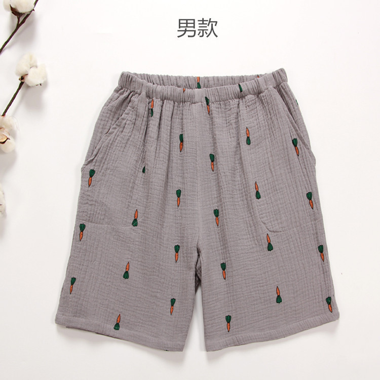 여름 커플 거즈 반바지 남자의 플러스 사이즈 면 크레이프 홈 바지 여자의 귀여운 당근 짧은 잠옷 바지 3 점 바지