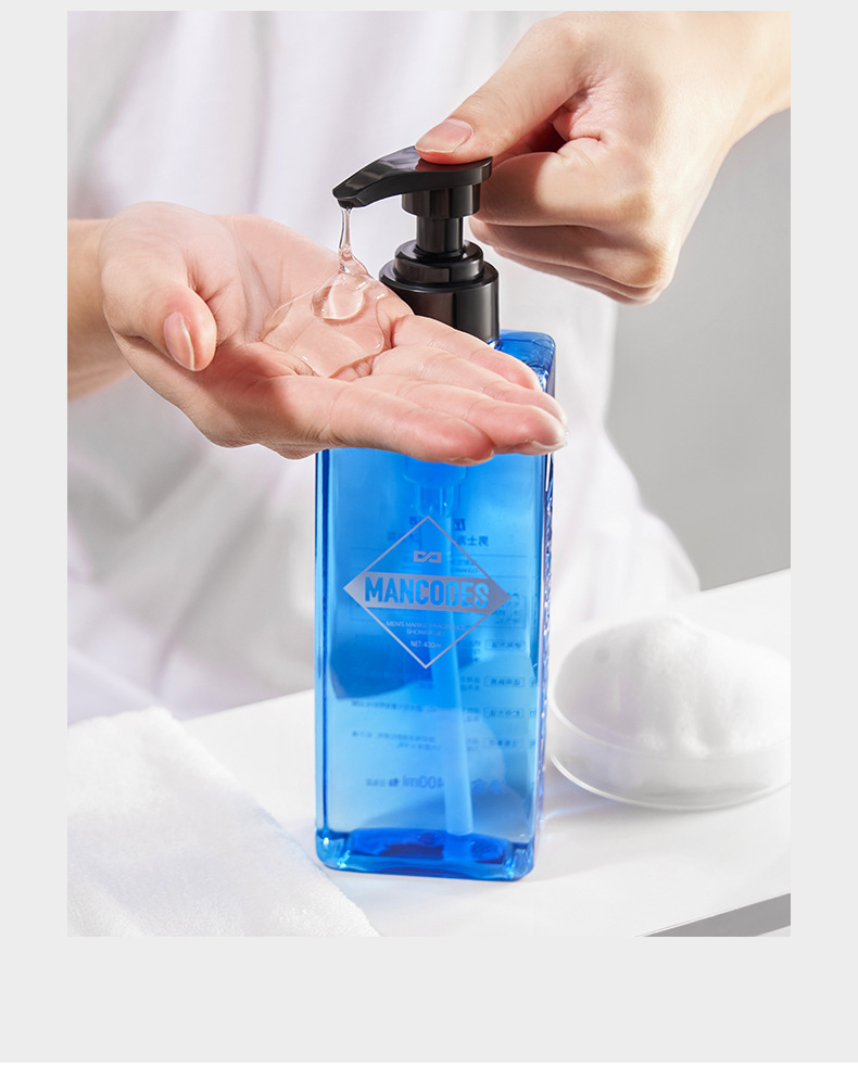 왼쪽은 색상, 오른쪽은 남성용 샤워젤, 오래 지속되는 향, 클렌징, 상쾌함, 비듬 방지, 오일 컨트롤, 정품 샴푸 및 케어 세트