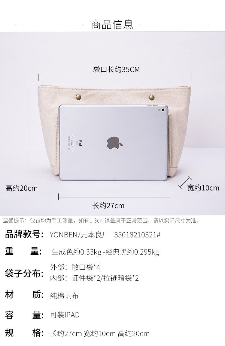 YONBEN/Yuanbenliang 공장 기능성 충실도 가방 여성용 휴대용 화장품 가방 면 캔버스 가방 내부 가방스토어 가기