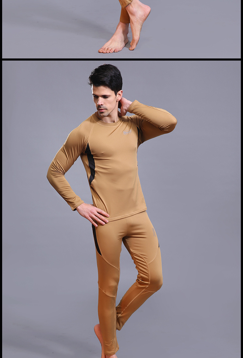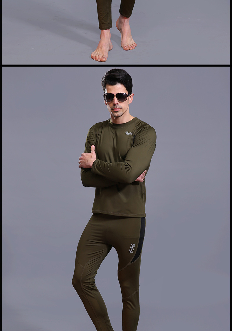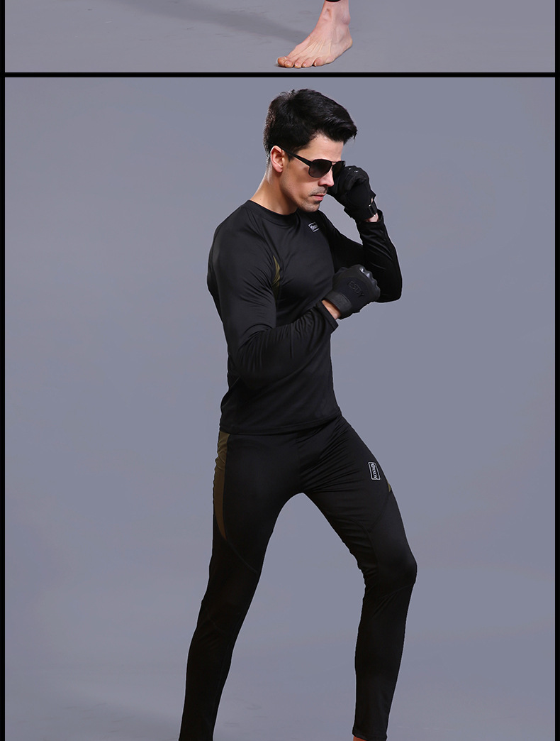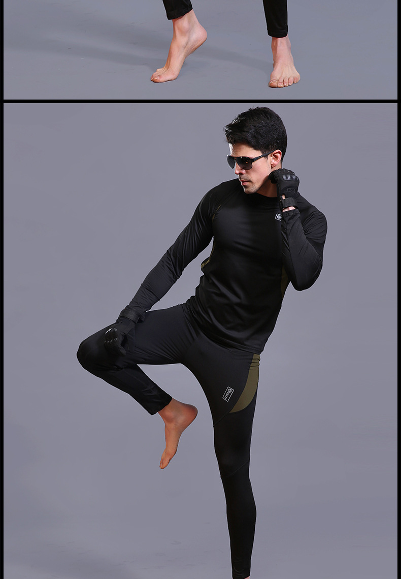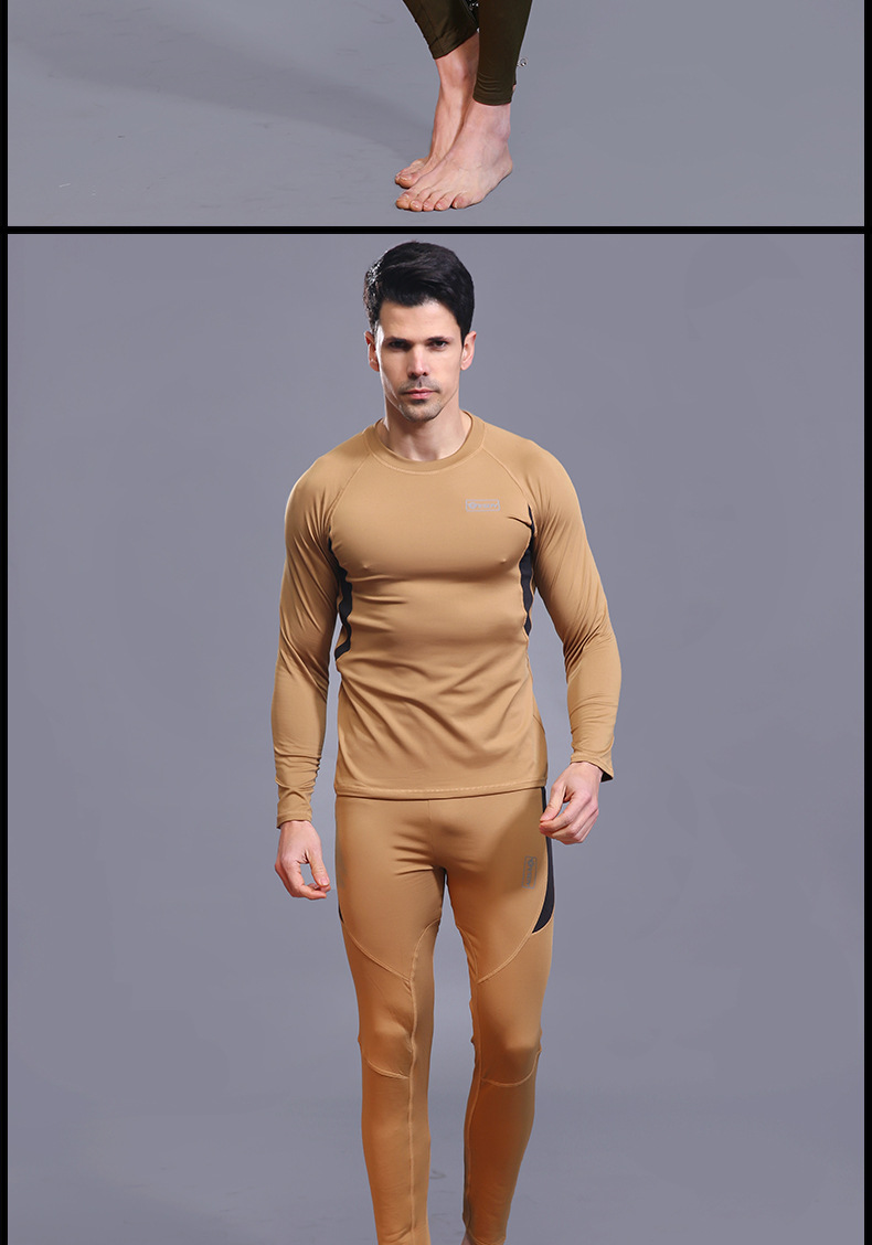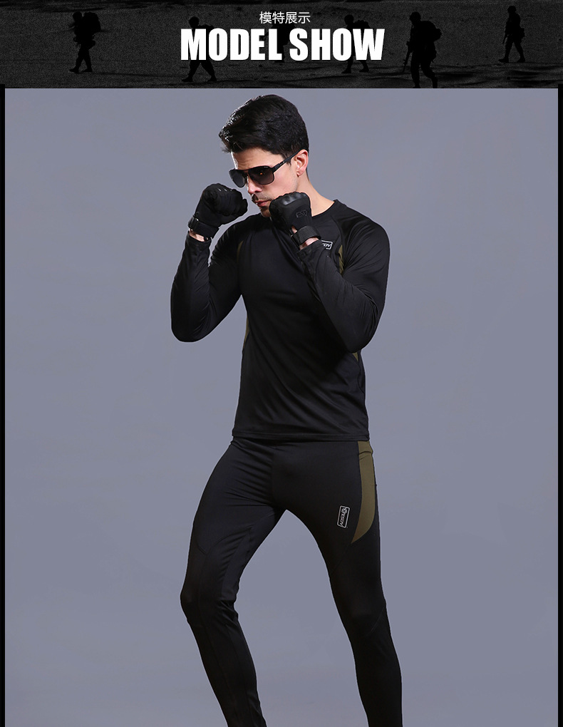 ESDY 야외 스포츠 보온 속옷, 타이트한 플리스 슈트, 신축성 있는 체력 트레이닝복, 땀 흡수 및 발산 기능, 남성용 위장복