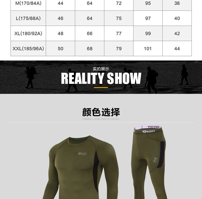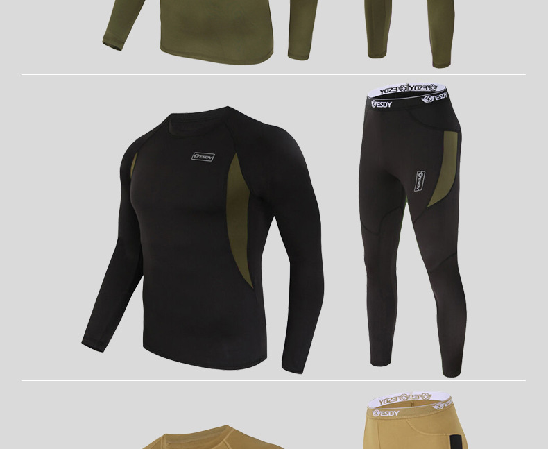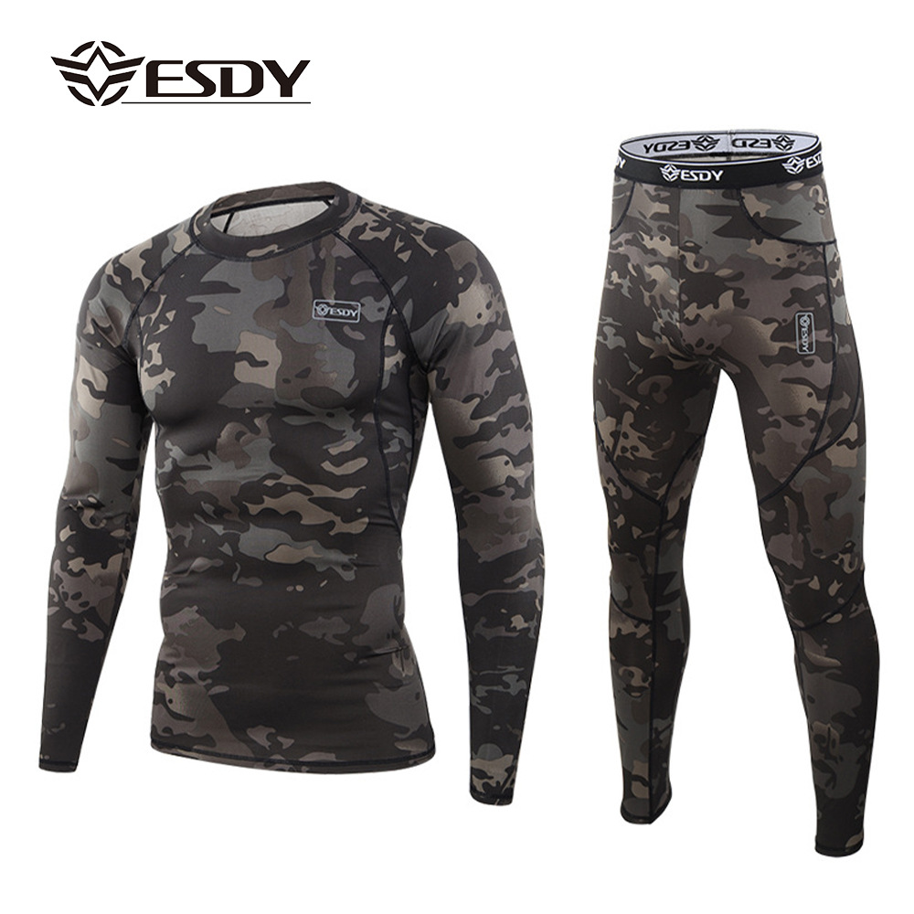 ESDY 야외 스포츠 보온 속옷, 타이트한 플리스 슈트, 신축성 있는 체력 트레이닝복, 땀 흡수 및 발산 기능, 남성용 위장복스토어 가기