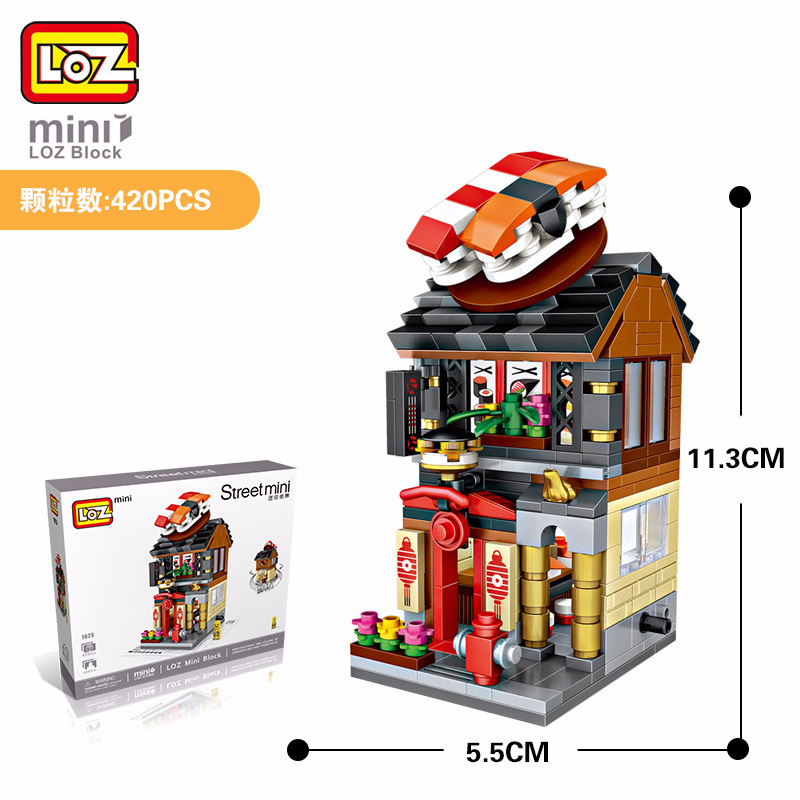LOZ 미니 미니 스트리트 뷰 빌딩 블록 스토어 스시 냄비 일본 음식 가게 선물 장난감 장식 여자 여자 친구스토어 가기