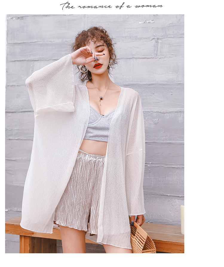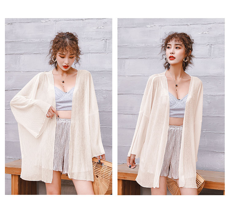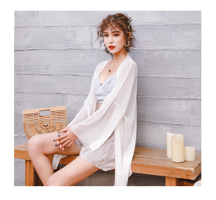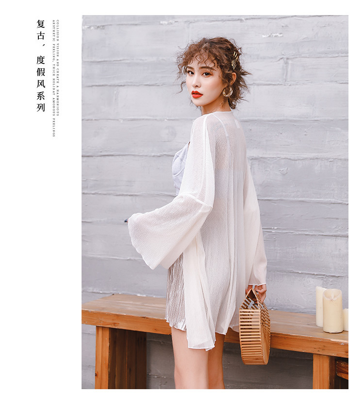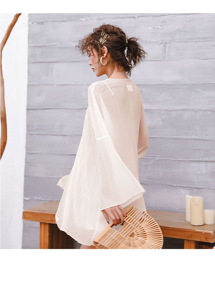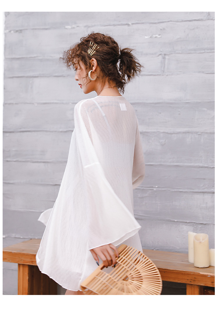 화이트 쉬폰 셔츠 여성용 태양 보호 의류 중간 길이 느슨한 숄 얇은 코트 해변 휴가 해변 태양 보호 셔츠 가디건