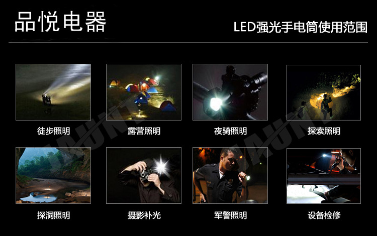 6、提 醒:由于电筒光线太强,请勿对人眼照射,超亮刺眼,可短暂致盲,特别是儿童。