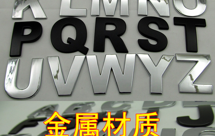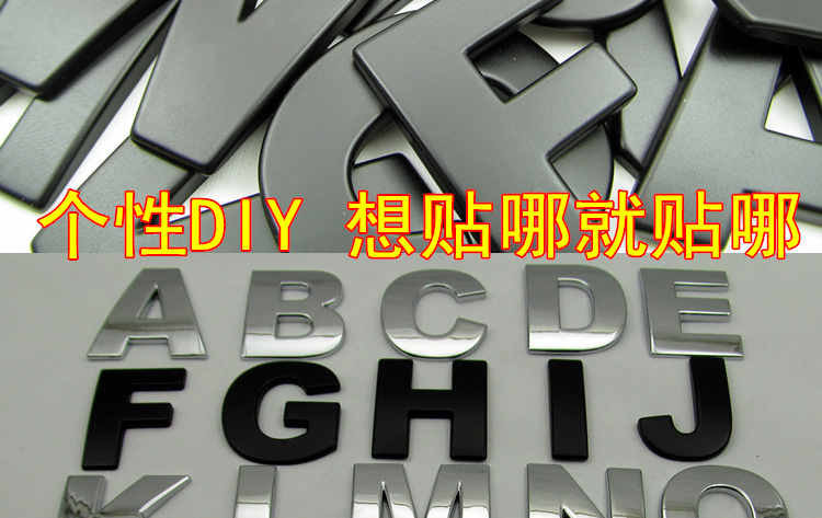 초대형 개인화 된 DIY 영어 알파벳 자동차 스티커 금속 수정 디지털 스티커 자동차 장식 자동차 로고 단어 로고