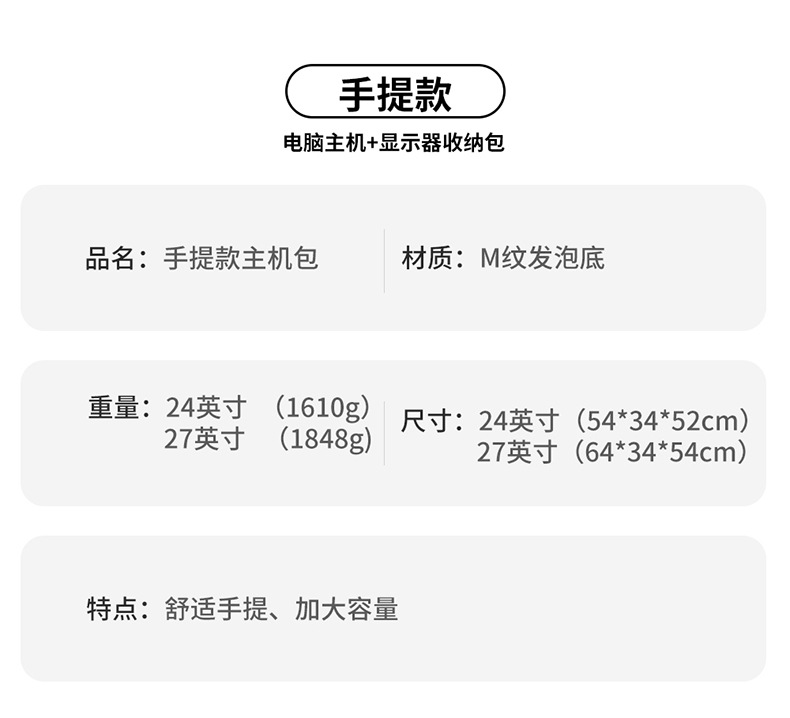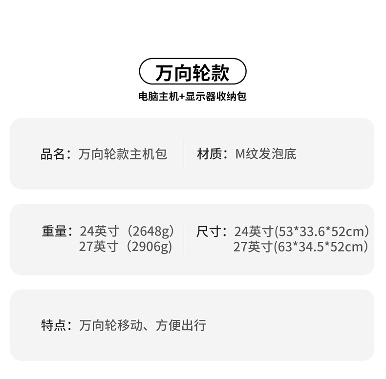 BUBM 내진 방수 컴퓨터 호스트 수하물 가방 e-스포츠 주변 장치 데스크탑 컴퓨터 보관 가능한 모니터 호스트 가방