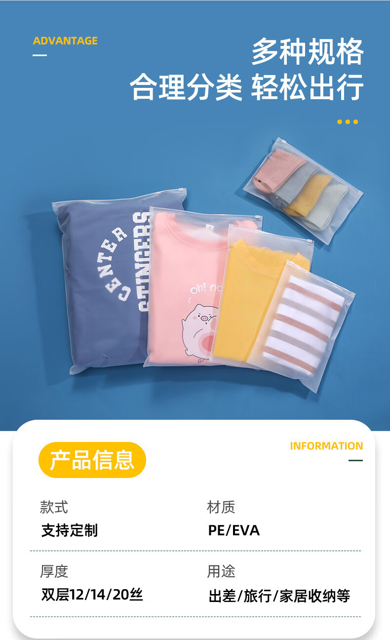 의류 포장 가방 고급스러운 도매 무광 두꺼운 방수 가정용 수납 속옷 여행용 의류 지퍼 가방스토어 가기