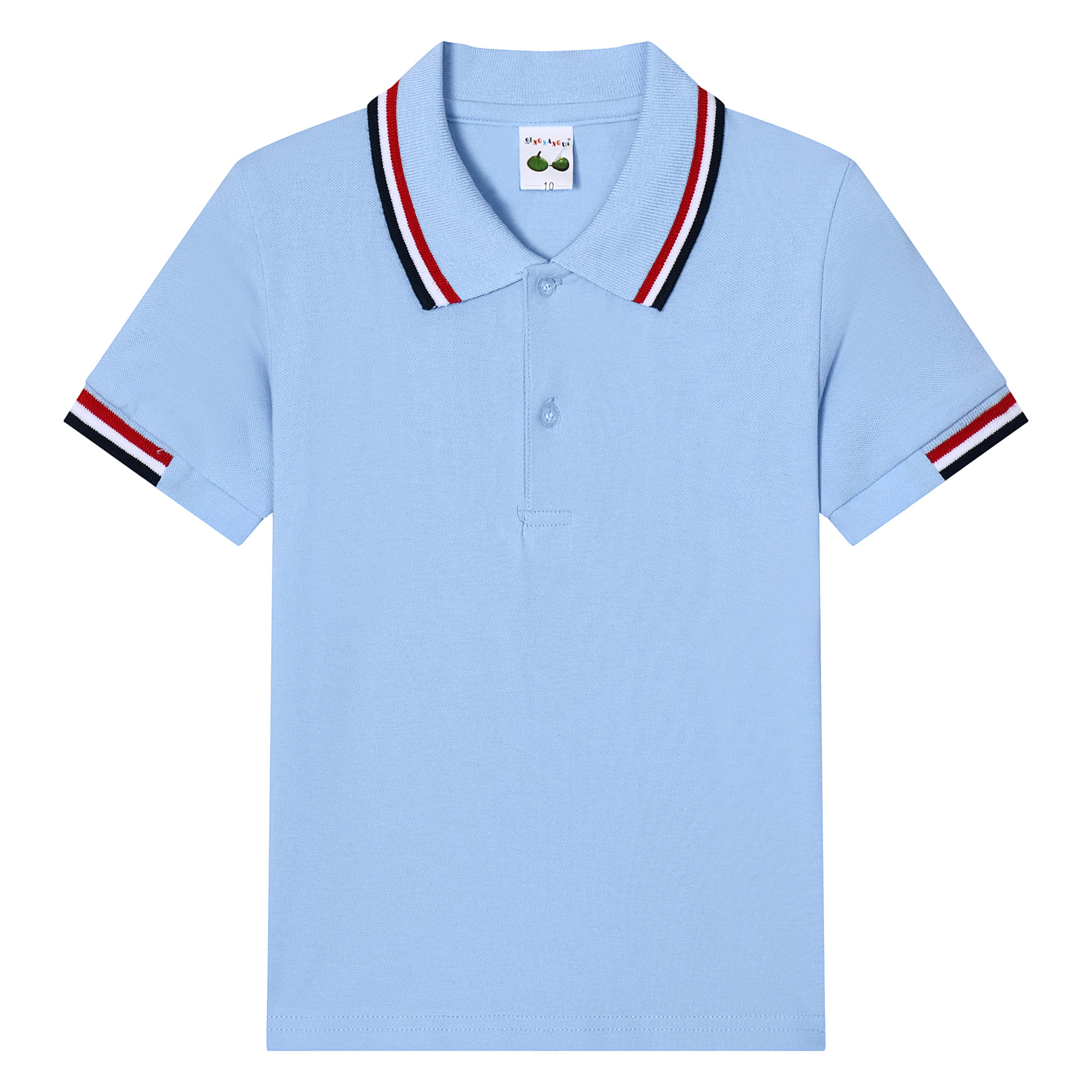 티셔츠 키즈 화이트 티셔츠 어린이 폴로 셔츠 반팔 면화 소년과 소녀 옷깃 흰색 교복 머리카락 세대