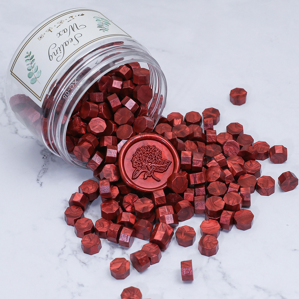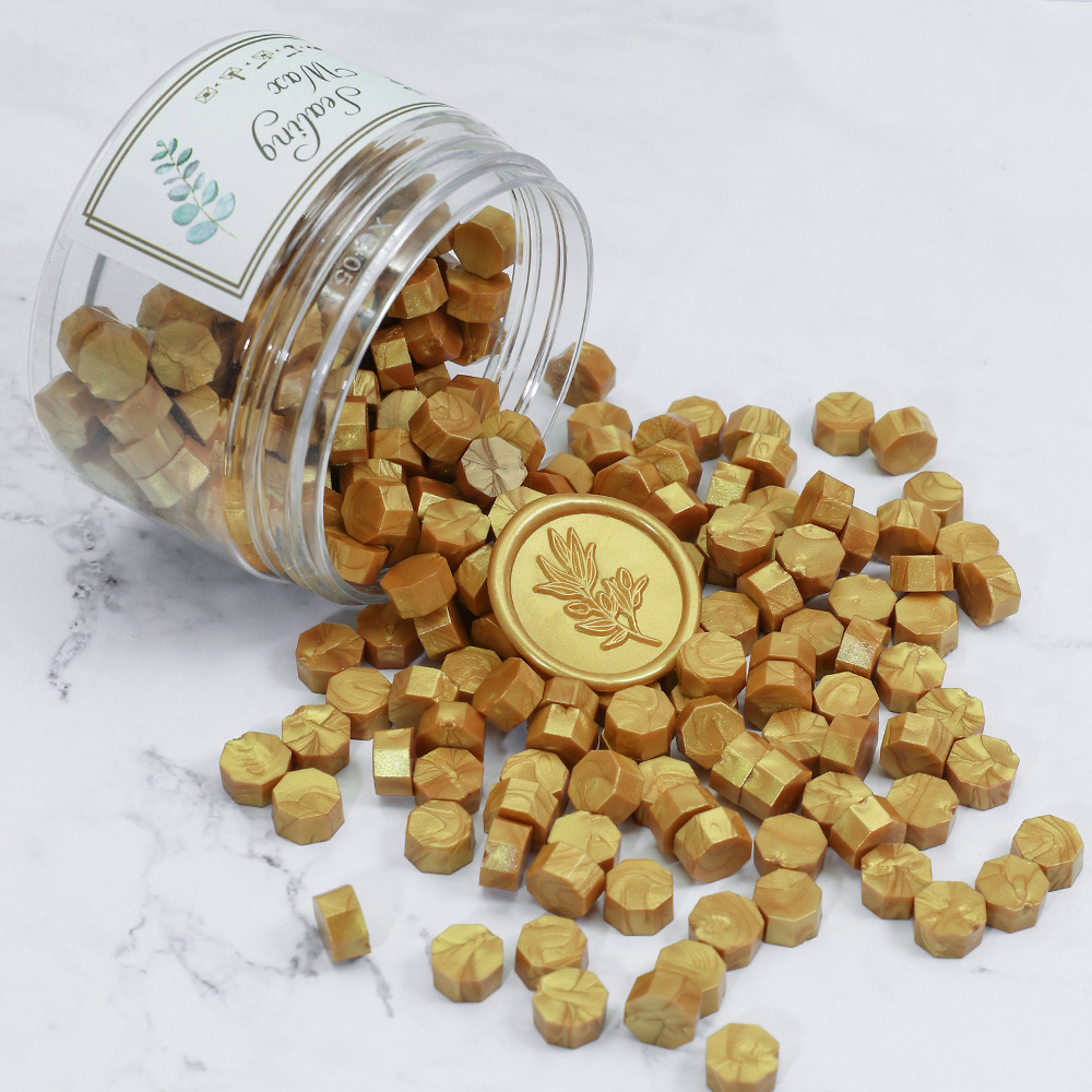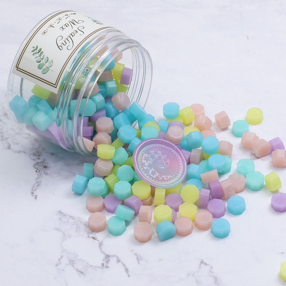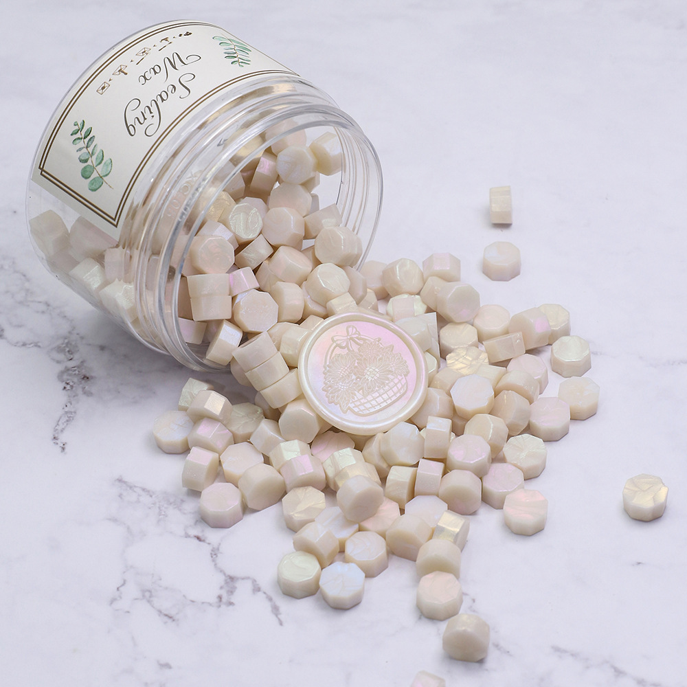 오우차이 화이트 라이트 왁스 입자 팔각형 혼합 색상 진주광 병 포장 200개 138색 화이트 라이트 왁스 인장용 왁스 입자 공장 직판스토어 가기
