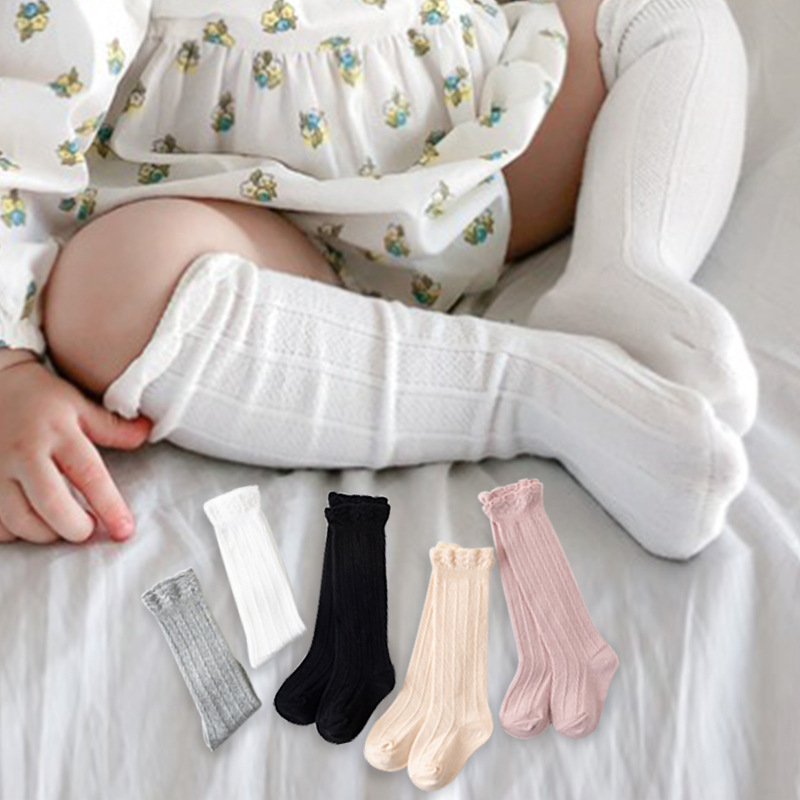 双针树纹花边宝宝中筒袜 跨境ins款
