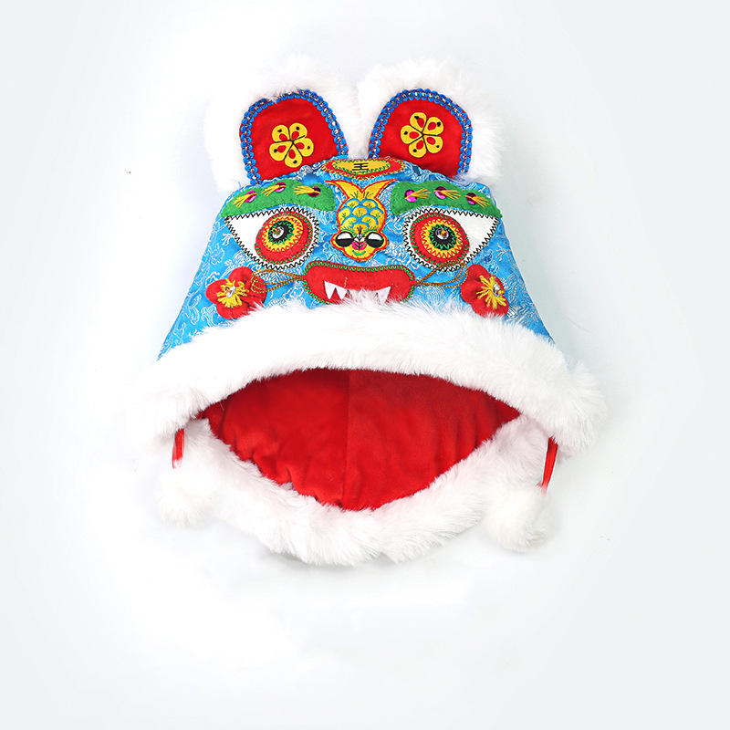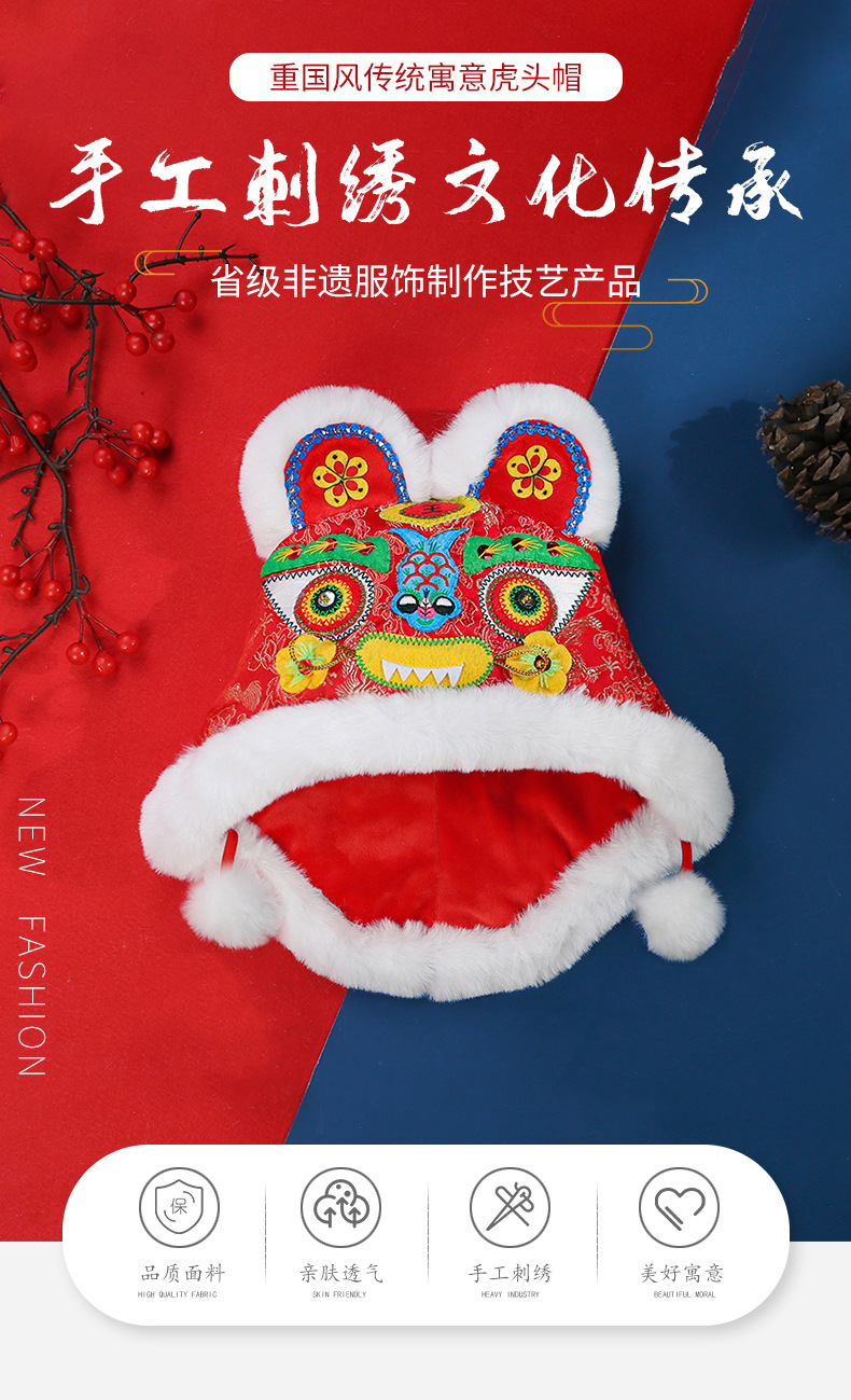 새로운 가을과 겨울 아기 호랑이 머리 모자 중국 스타일 사진 전통 자수 아기 면 모자 새해 사진 당나라 원피스 모자