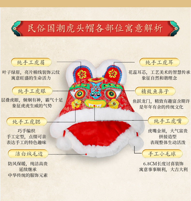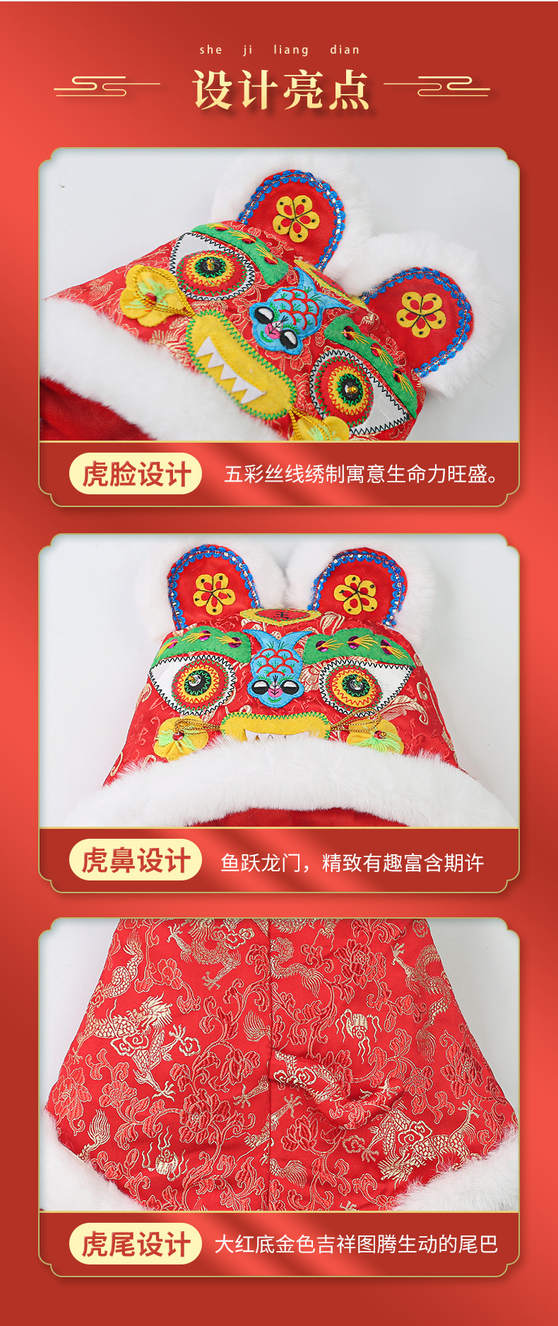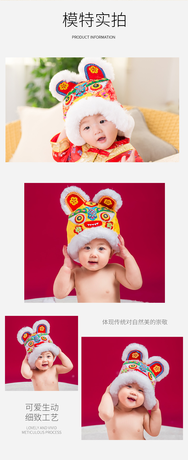 새로운 가을과 겨울 아기 호랑이 머리 모자 중국 스타일 사진 전통 자수 아기 면 모자 새해 사진 당나라 원피스 모자스토어 가기