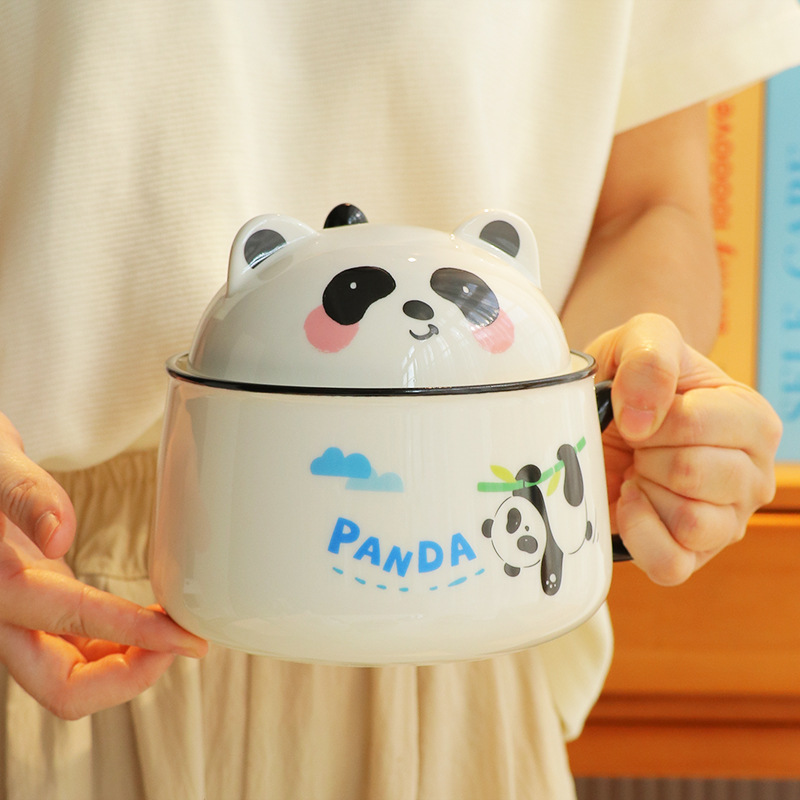 학생 기숙사 아티팩트 세라믹 벨트 손잡이 뚜껑이있는 대용량 인스턴트 국수 그릇 창조적 인 귀여운 돼지 만화 큰 수프 그릇