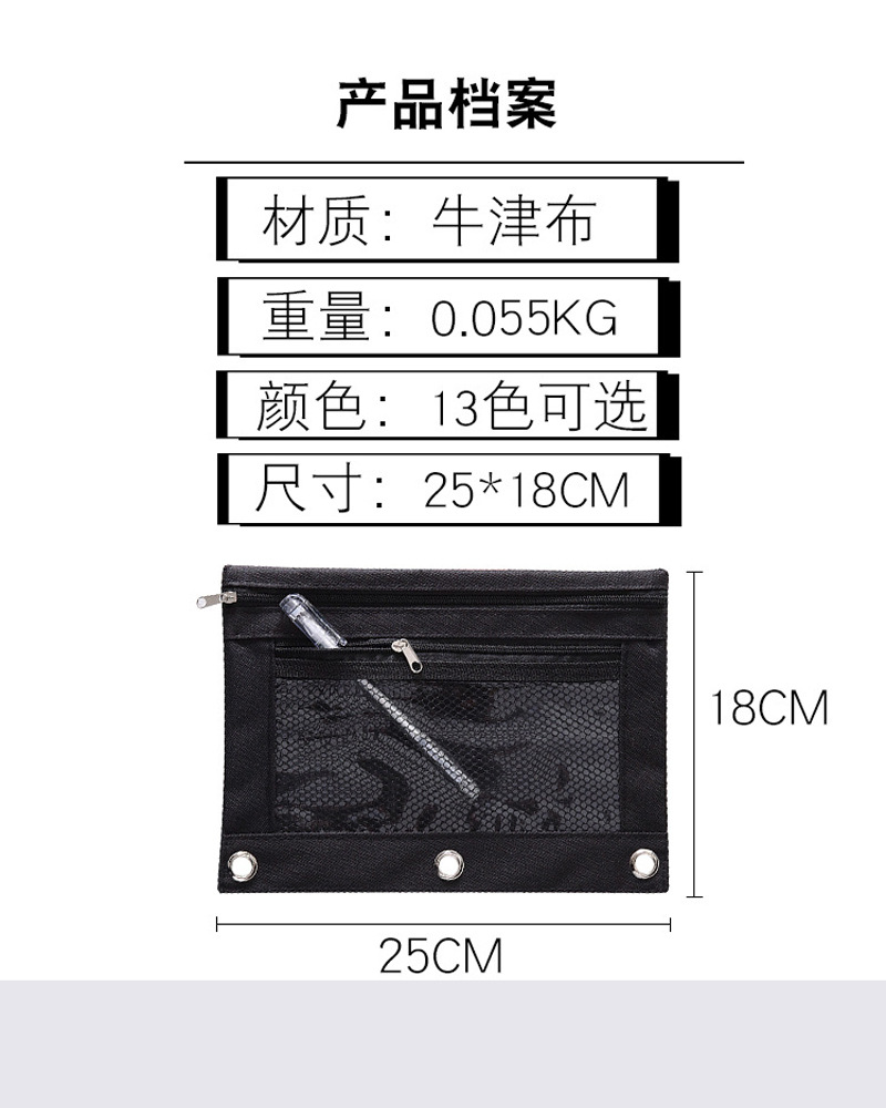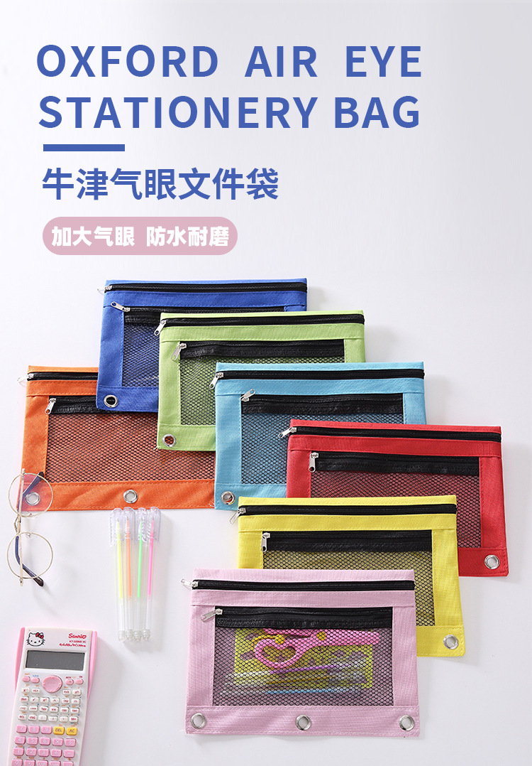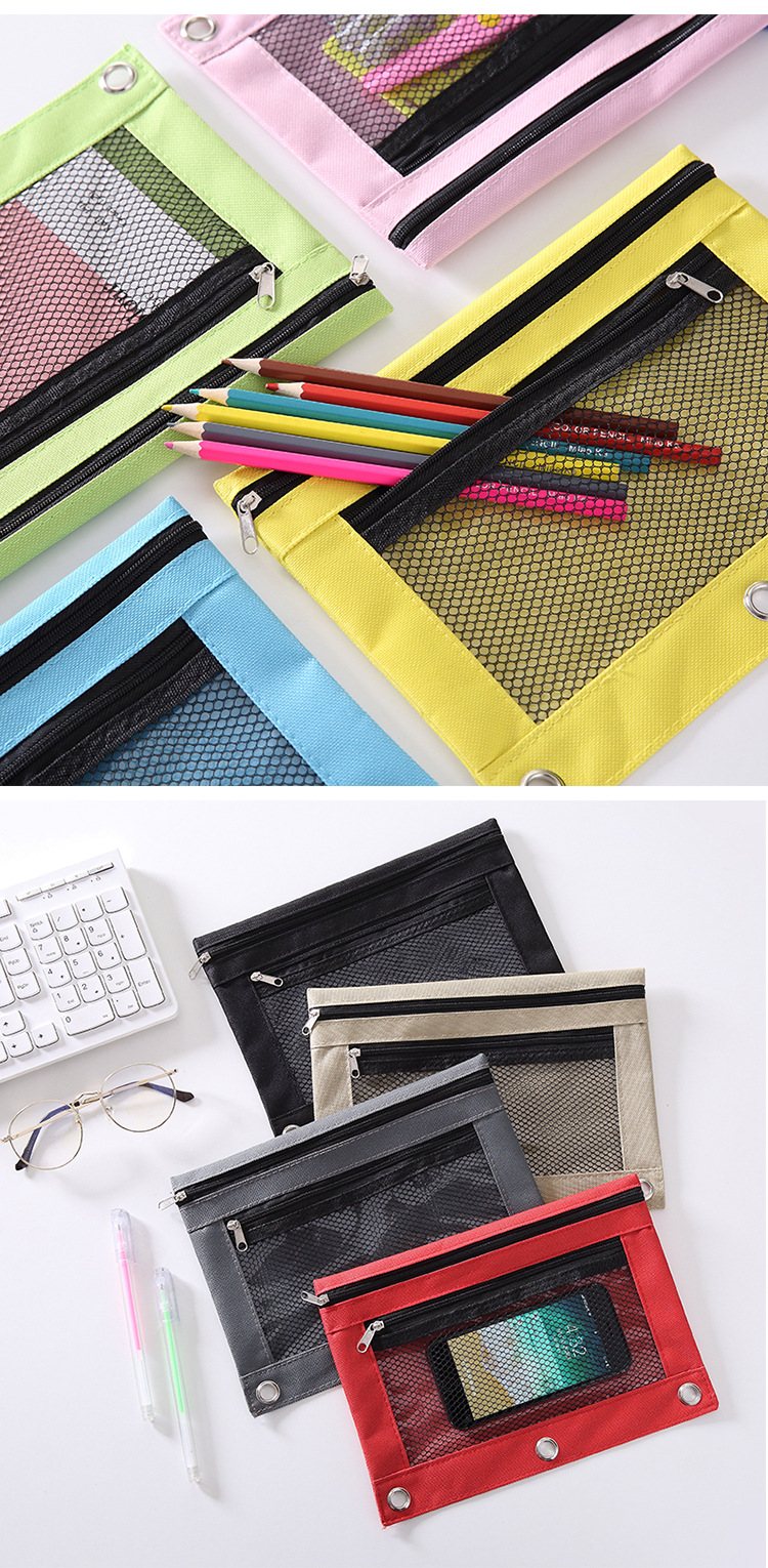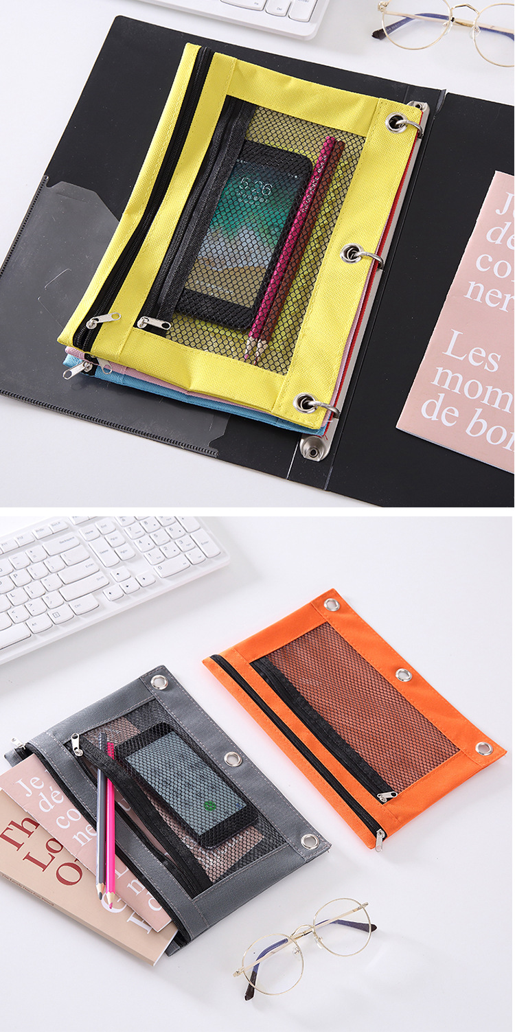 더블 지퍼 3 홀 펜 가방 투명 PVC 분리형 B5 바인더 사무실 문서 가방 15 색 옵션 제조업체 승인