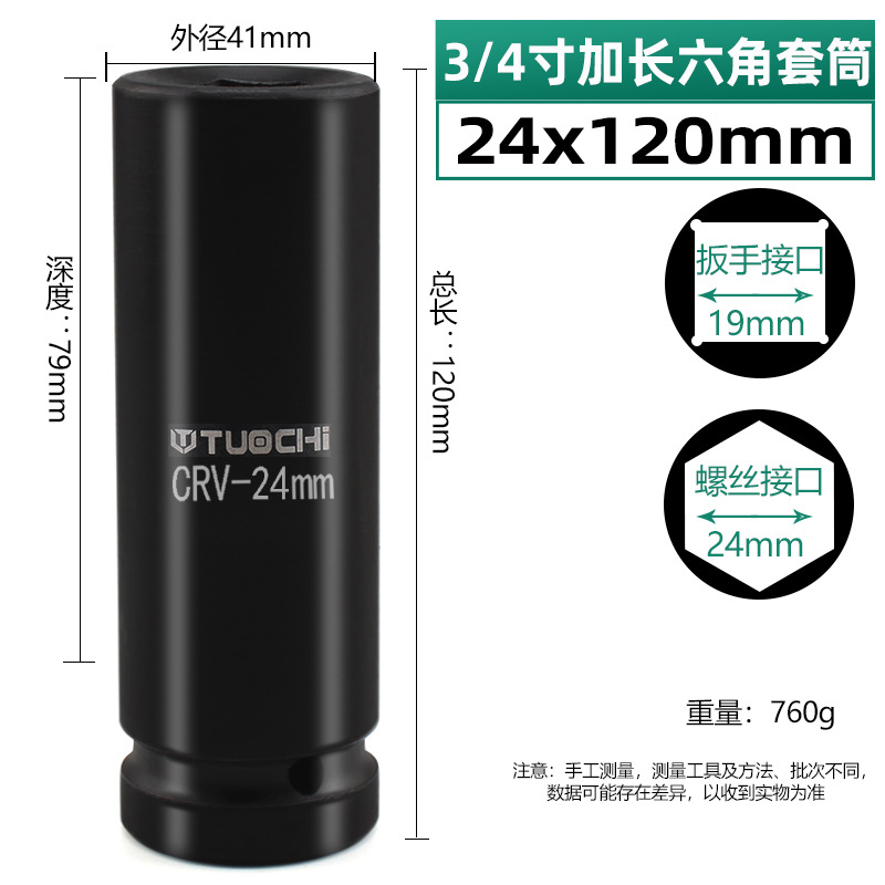 에어건 소켓 3/4 인치 연장 전기 렌치 소켓 헤드 길이 6 육각 공압 소켓 무거운 공압 렌치