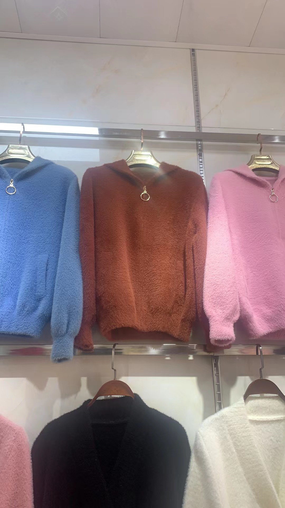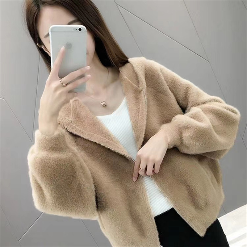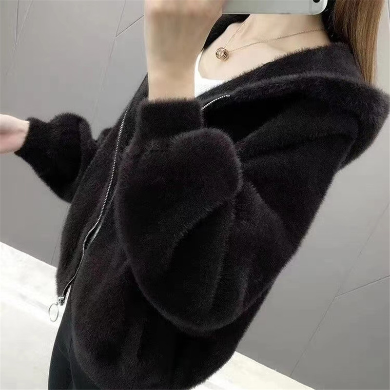 2025년 신상 가을 털이 부드러운 후드 코트 인조 밍크 벨벳 학생용 짧은 긴팔 니트 가디건 여성용스토어 가기