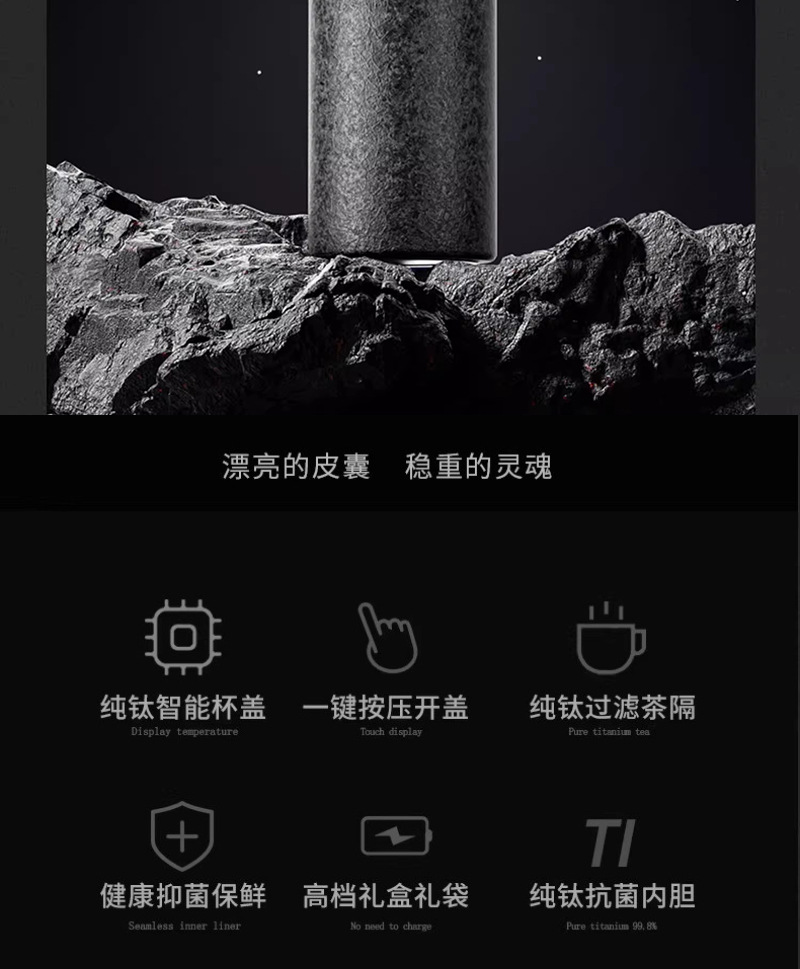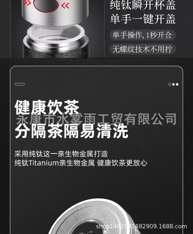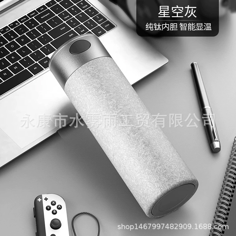 신형 아이스 플라워 페인트 순수 티타늄 빠른 개봉 컵 원터치 뚜껑 물컵 남성용 보온컵 남성용 차와 물 분리 찻잔스토어 가기