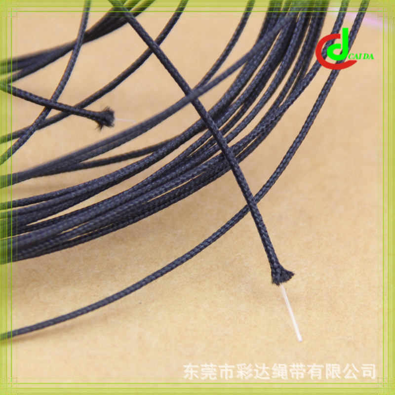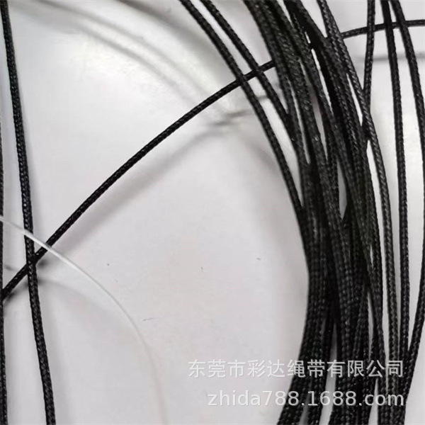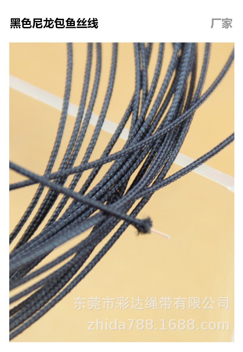 제조업체에서 생산한 0.8MM 검정색 나일론 의류 태그 끈, 휴대폰 걸이용 낚싯줄, 코어가 포함된 직조, 단단한 촉감