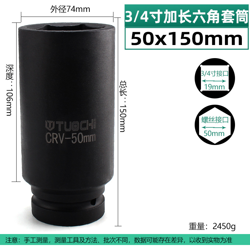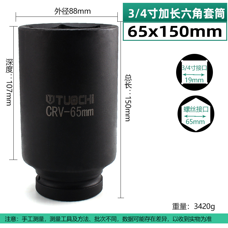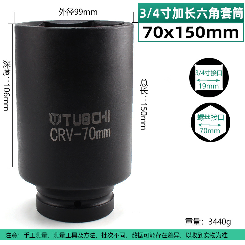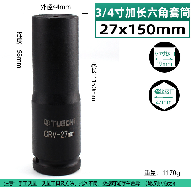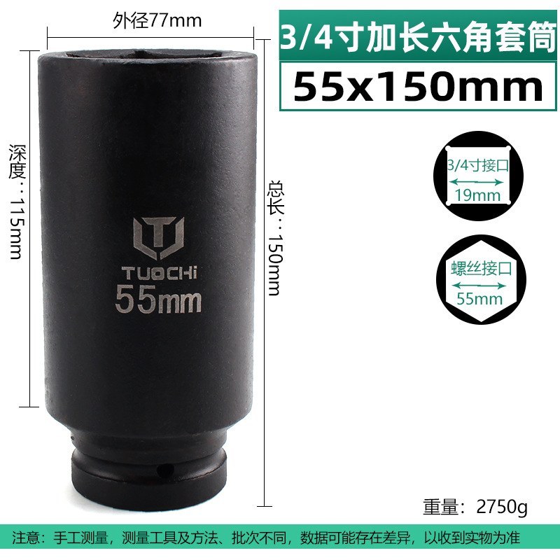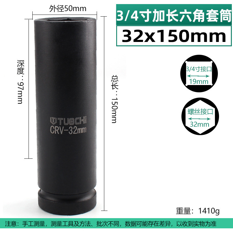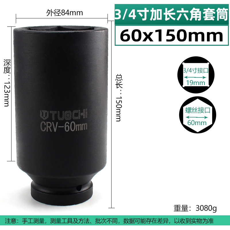 공압 렌치 3/4 인치 연장 된 전기 렌치 슬리브 헤드 6 육각형 공압 슬리브 대형 공기총 슬리브