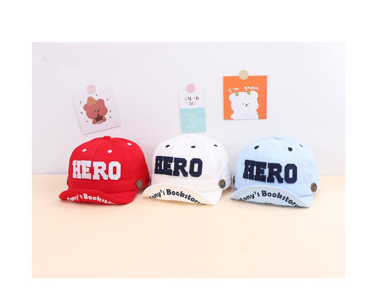 한국 스타일 아기 모자 자수 HERO 면직물 유아용 썬캡 큰 챙 접이식 챙 어린이 캡 모자 트렌디한 스타일스토어 가기