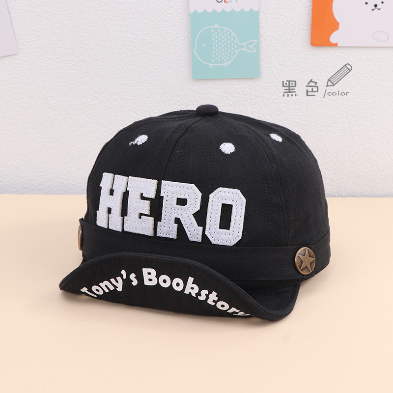 한국 스타일 아기 모자 자수 HERO 면직물 유아용 썬캡 큰 챙 접이식 챙 어린이 캡 모자 트렌디한 스타일
