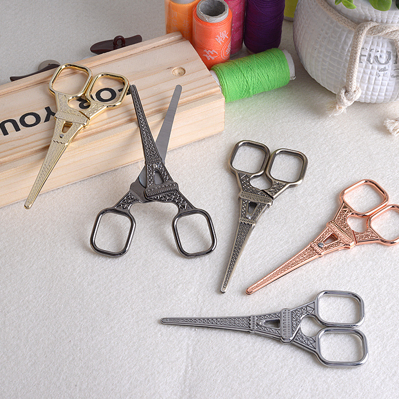 不锈钢巴黎铁塔剪刀眉毛剪青铜色玫瑰金色多功能剪刀家用美容工具