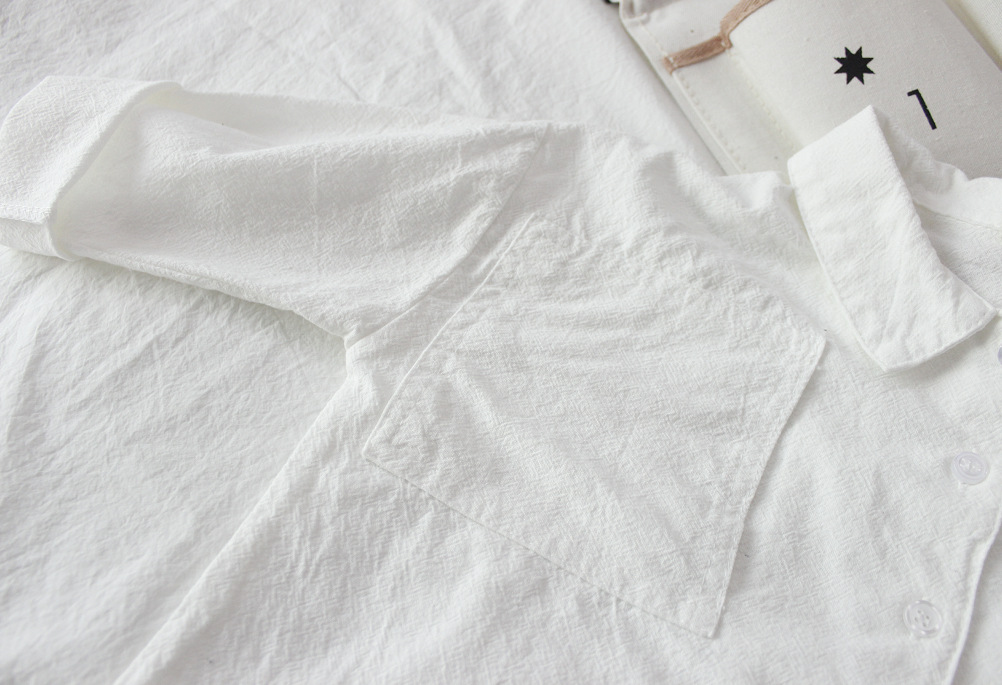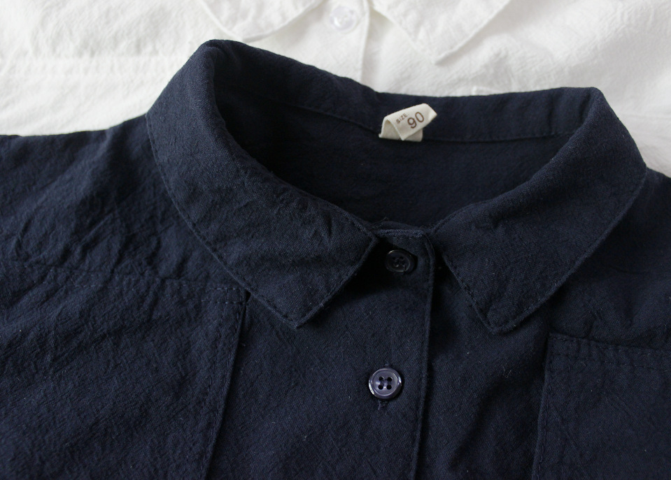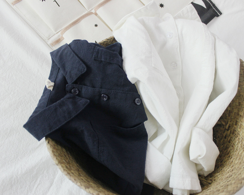 봄 아동 셔츠면과 린넨 남아 상의 한국식 배트 슬리브 라펠 여아 셔츠 더블 포켓 카테고리 단색스토어 가기