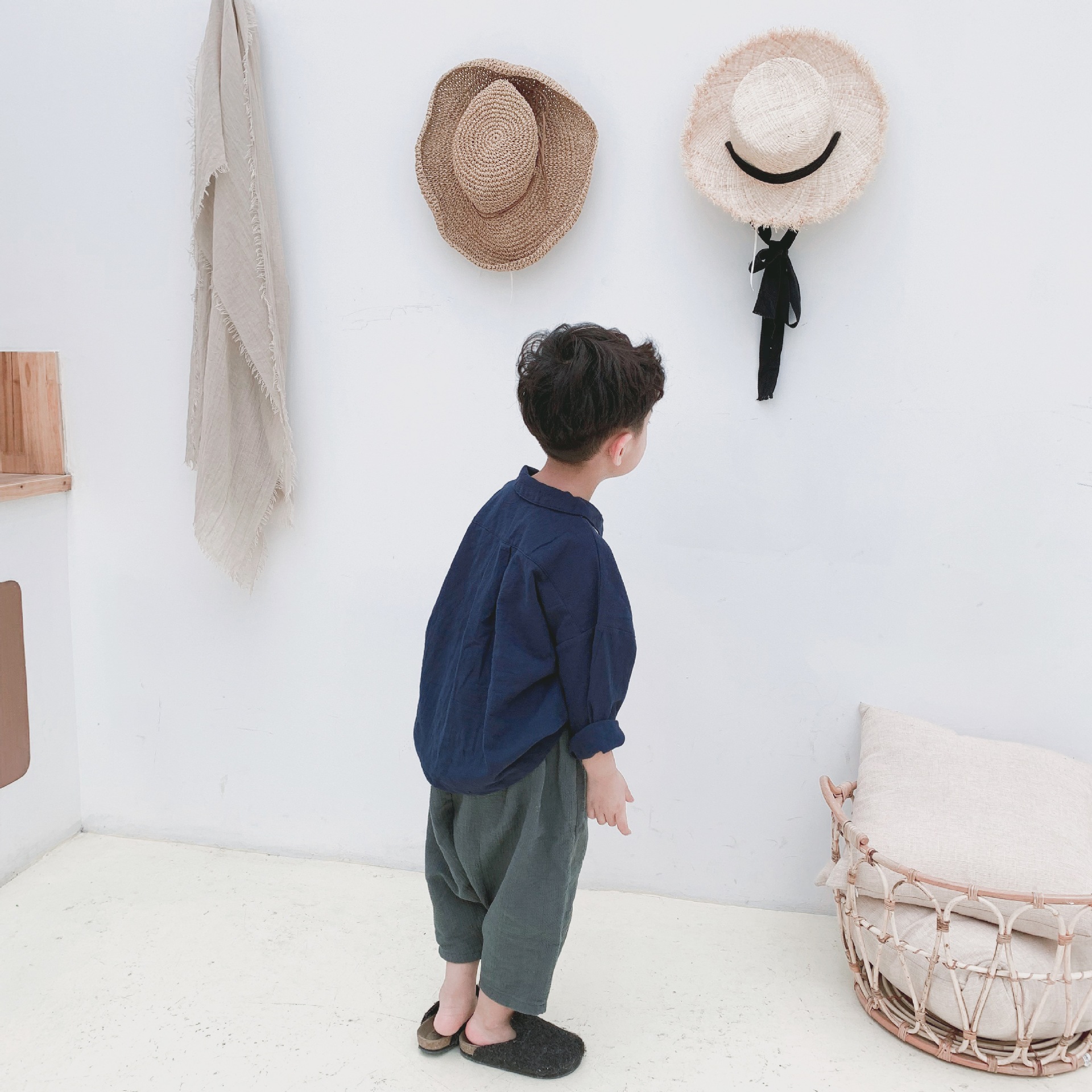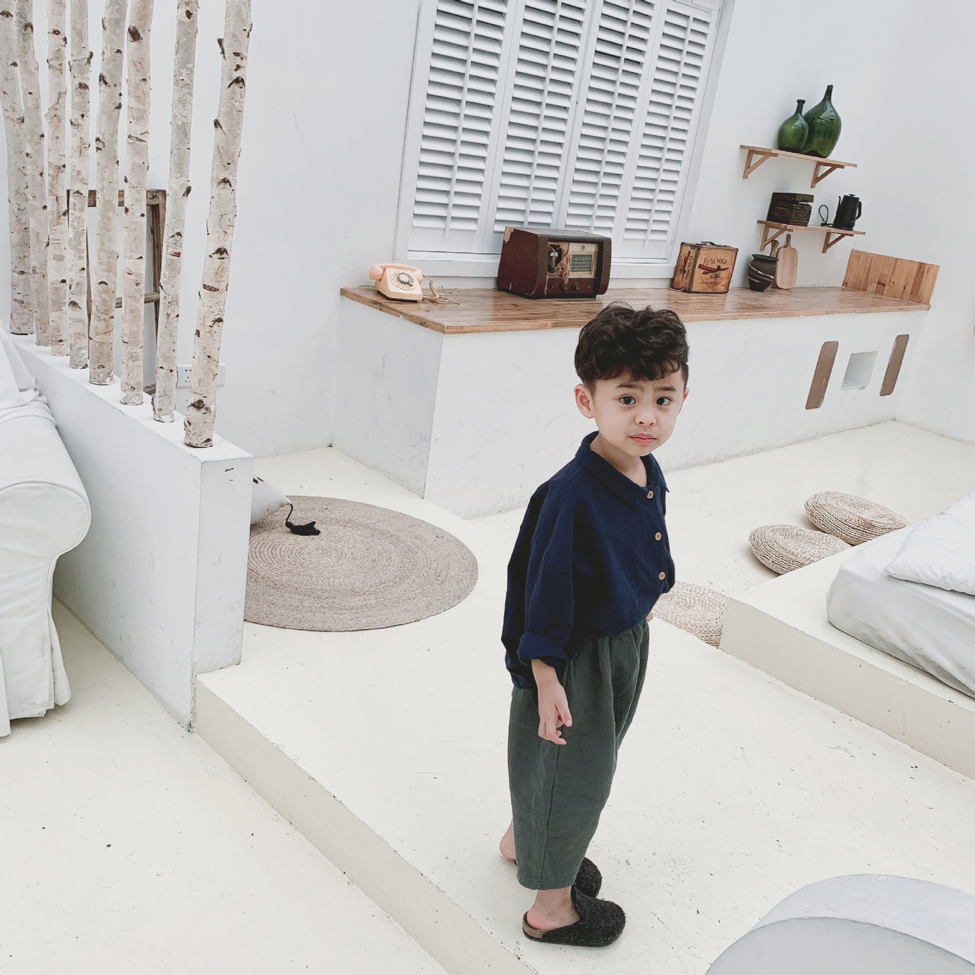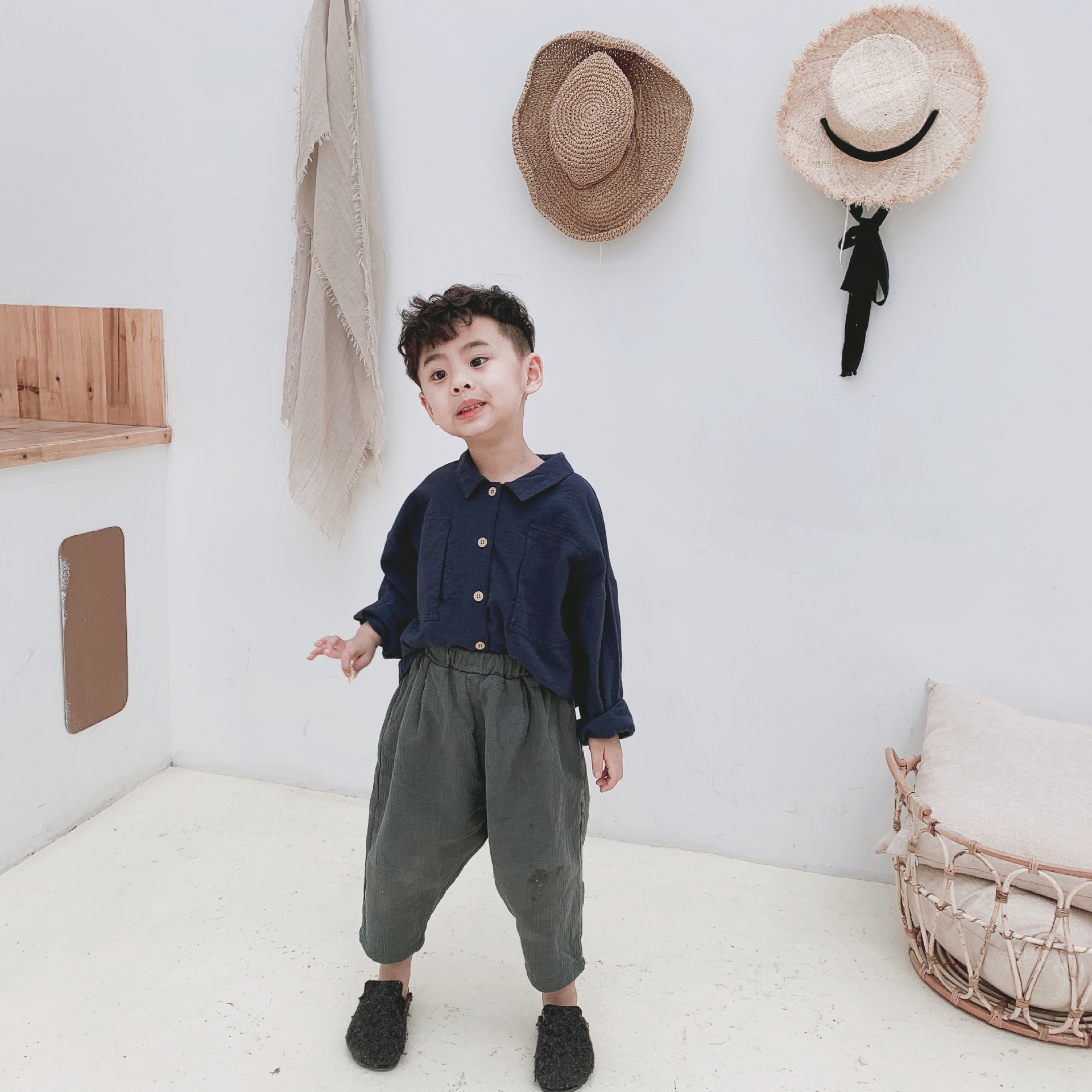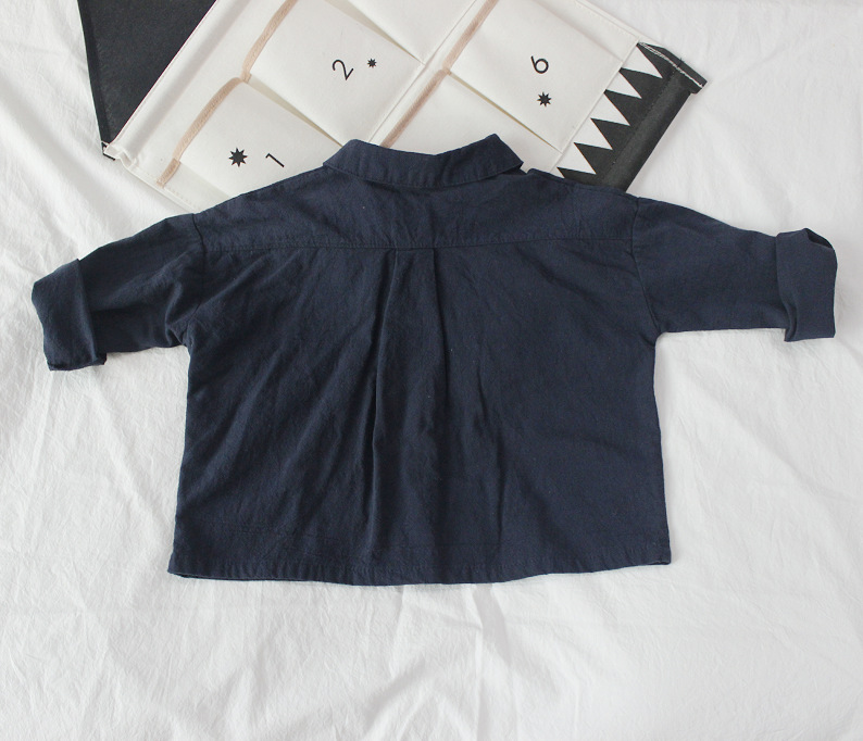 봄 아동 셔츠면과 린넨 남아 상의 한국식 배트 슬리브 라펠 여아 셔츠 더블 포켓 카테고리 단색