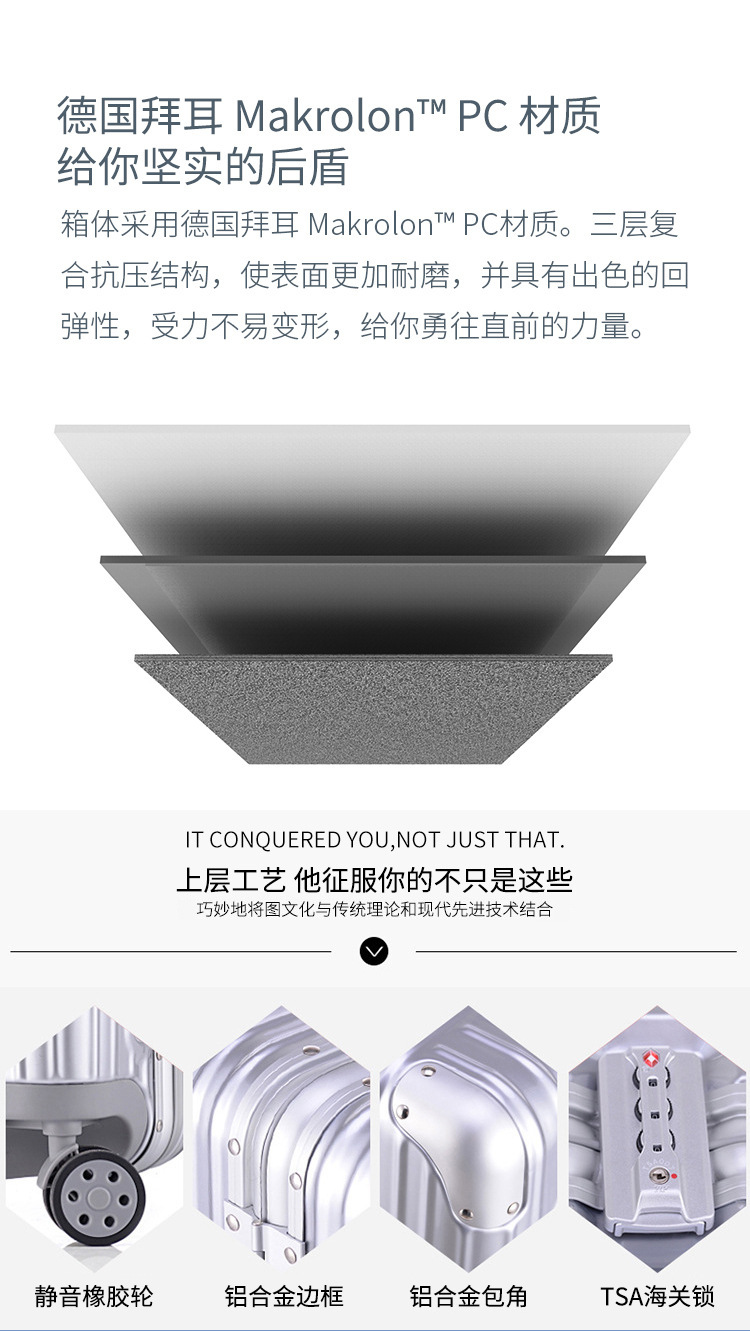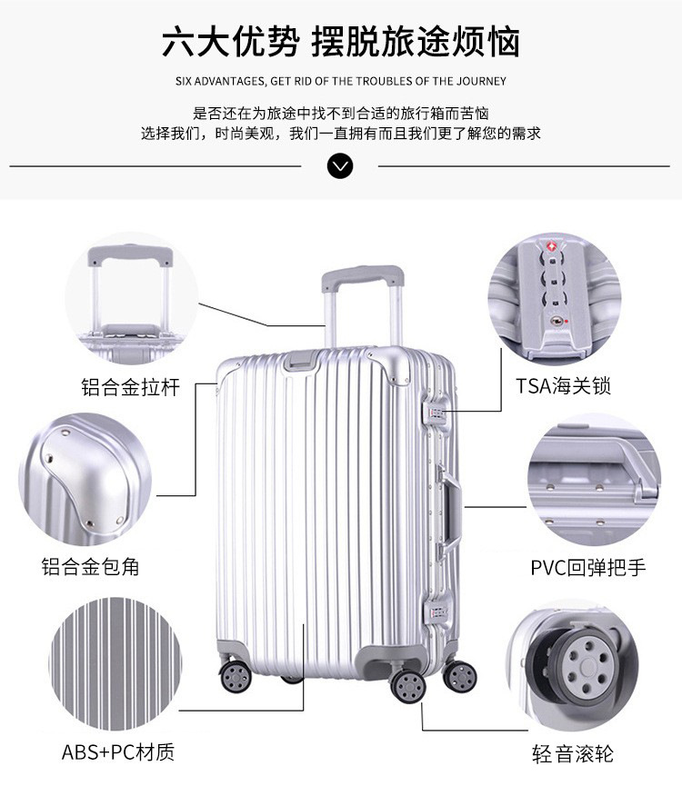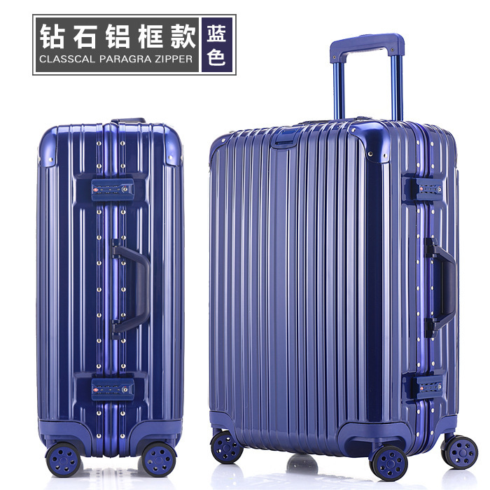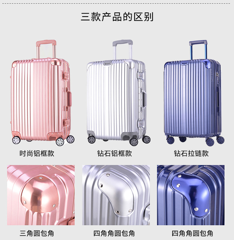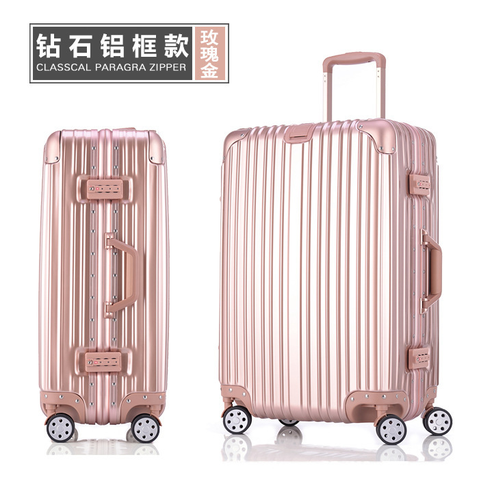도매 코너 알루미늄 프레임 다이아몬드 스타일 롤링 캐리어, 회전 바퀴, 비밀번호 잠금, 캐주얼 패션 기내 여행용 캐리어