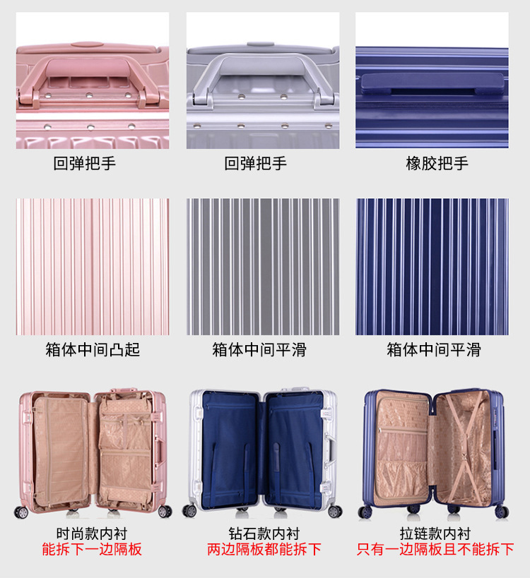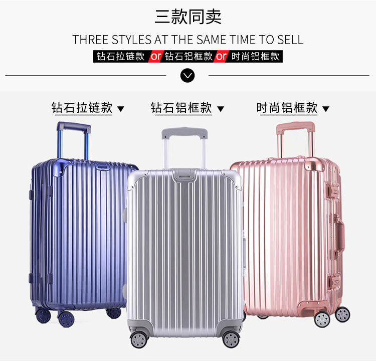 도매 코너 알루미늄 프레임 다이아몬드 스타일 롤링 캐리어, 회전 바퀴, 비밀번호 잠금, 캐주얼 패션 기내 여행용 캐리어스토어 가기