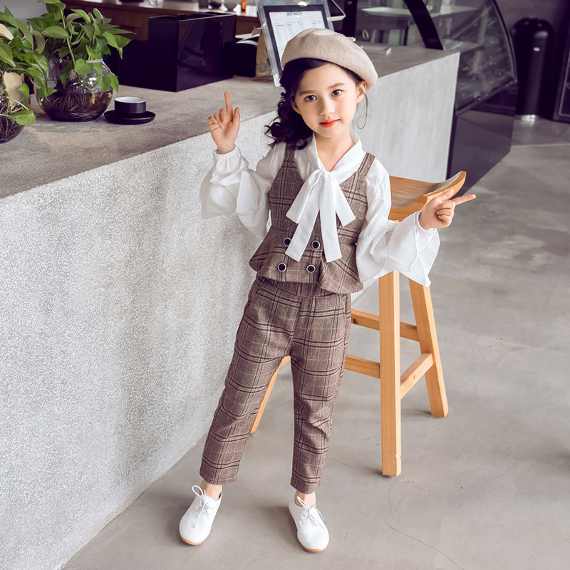 어린이 세트 소녀의 셔츠 조끼 바지 세련된 쓰리 피스 봄 소녀의 2022 새로운 유행 한국 아동 의류스토어 가기