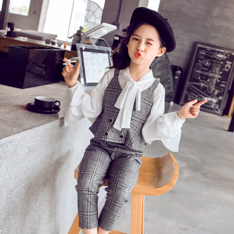 어린이 세트 소녀의 셔츠 조끼 바지 세련된 쓰리 피스 봄 소녀의 2022 새로운 유행 한국 아동 의류