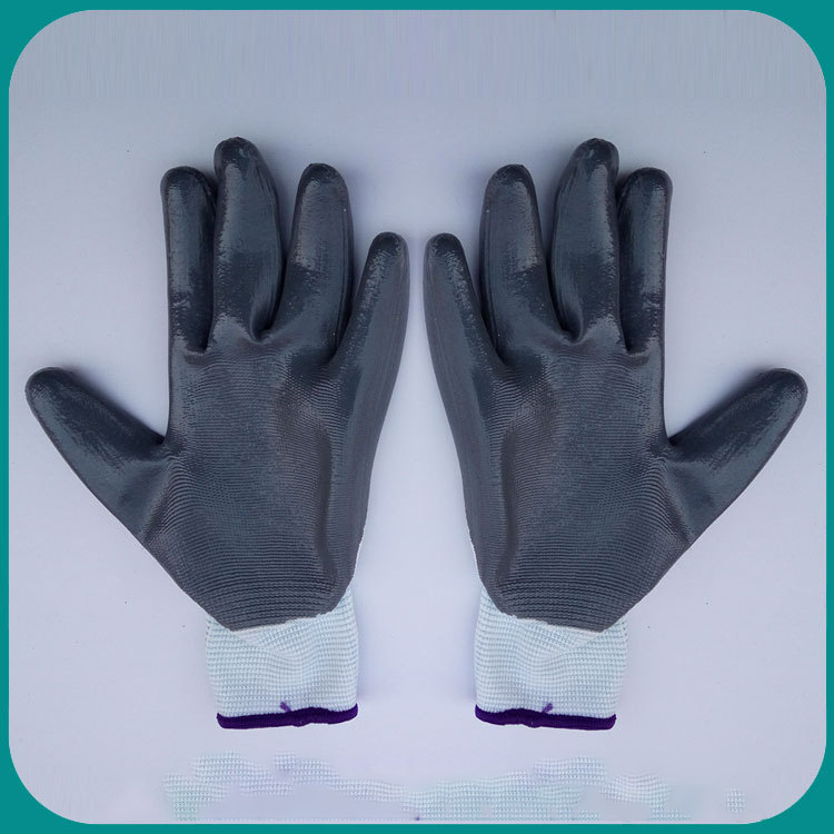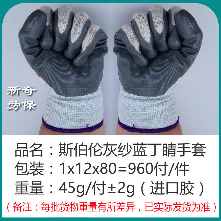 【商品材质】:十三针尼龙纱线手套芯+面层浸渍丁晴乳胶(光面);