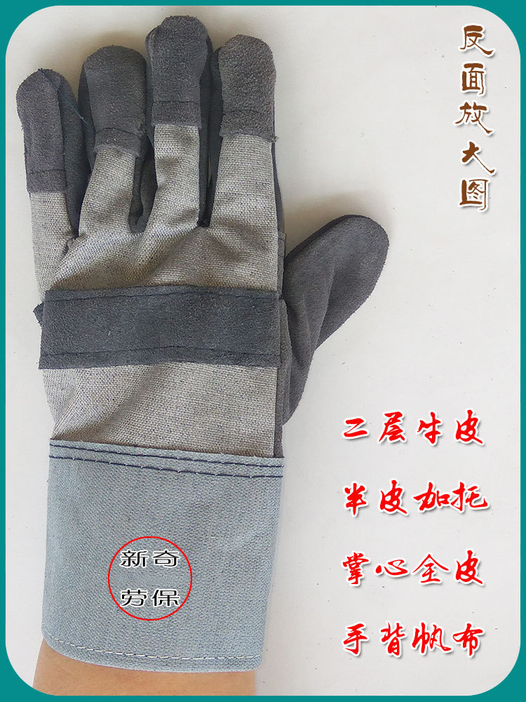 【商品名称】:灰色二层牛皮半皮掌心加托短款电焊手套氩弧焊气焊手套
