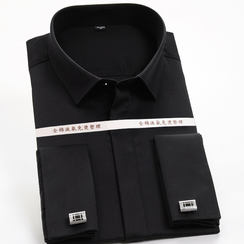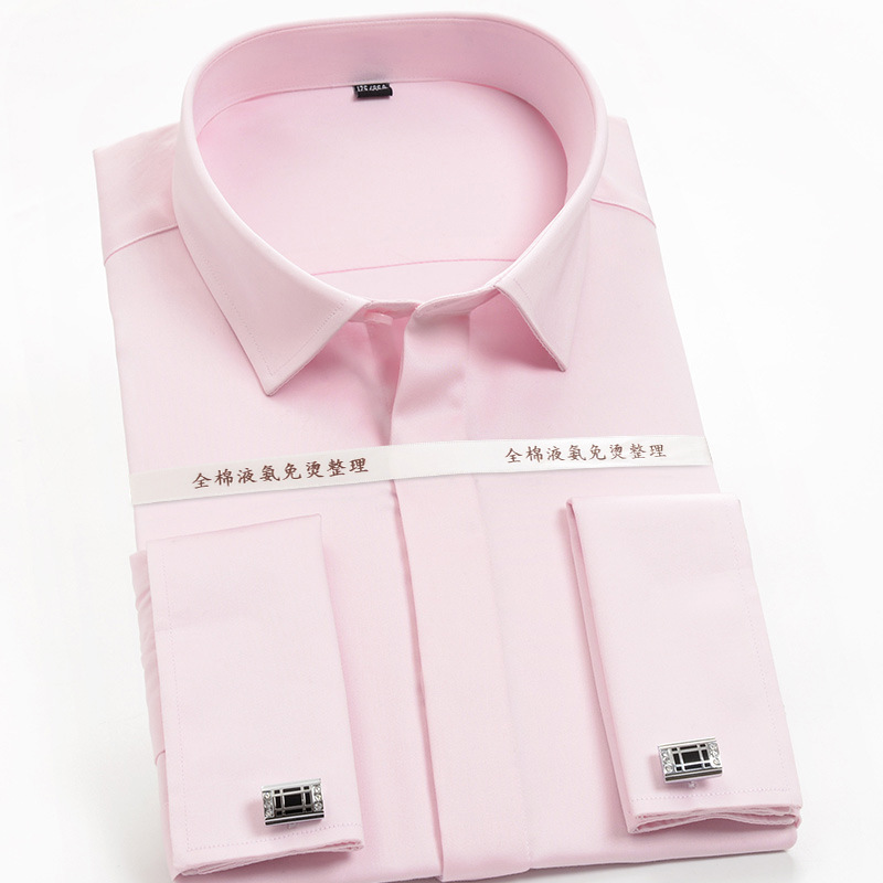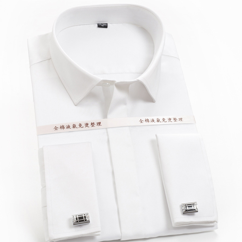 금빛 방패 프랑스 스타일 셔츠 남성용 긴팔 순면 슬림핏 비즈니스 정장 다림질 필요 없는 신랑 결혼식 셔츠 커프스 단추 포함 순면 흰색 셔츠스토어 가기