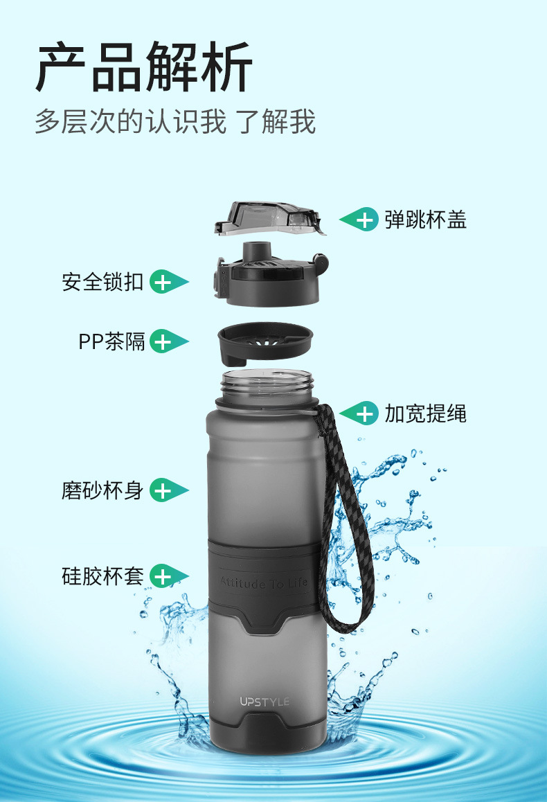 Upstyle Youjiayi tritan 소재 대용량 휴대용 낙하 방지 피트니스 주전자 플라스틱 컵