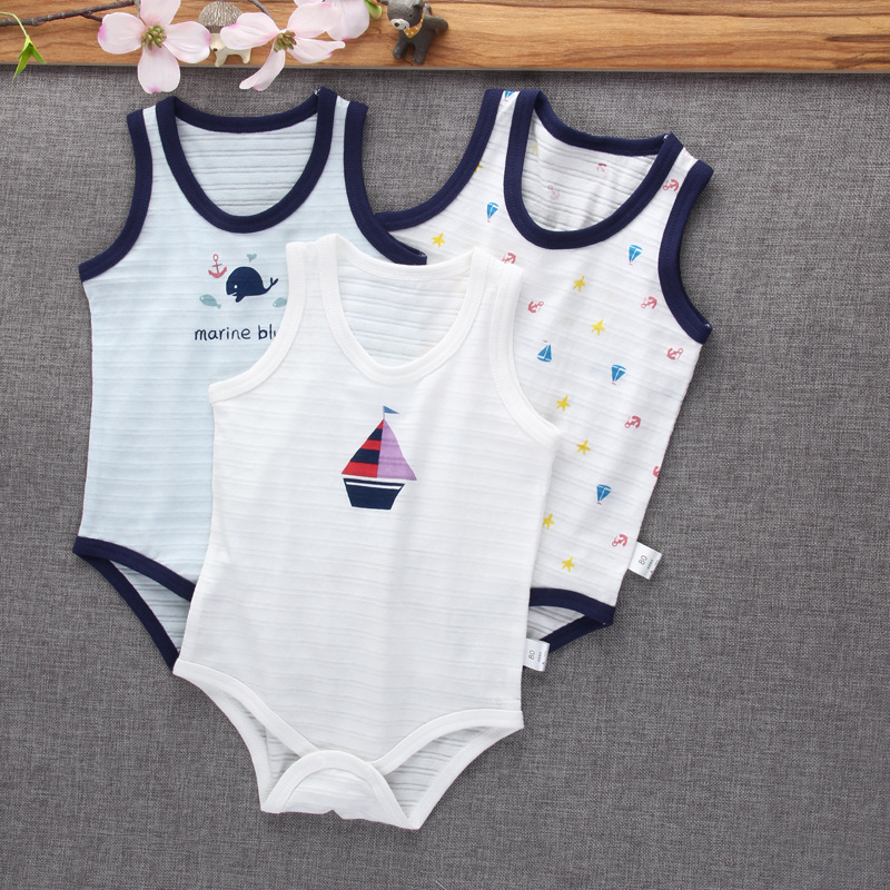 新款竹节棉帆船三件包背心哈衣,一包3件的价格,尺码80 90 95 100码