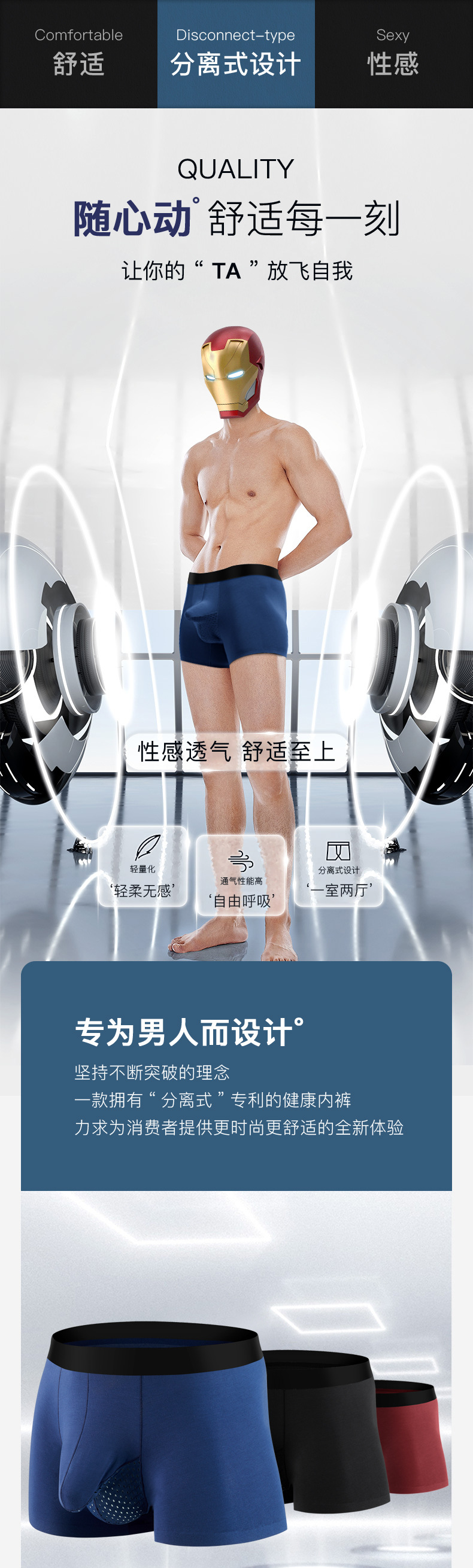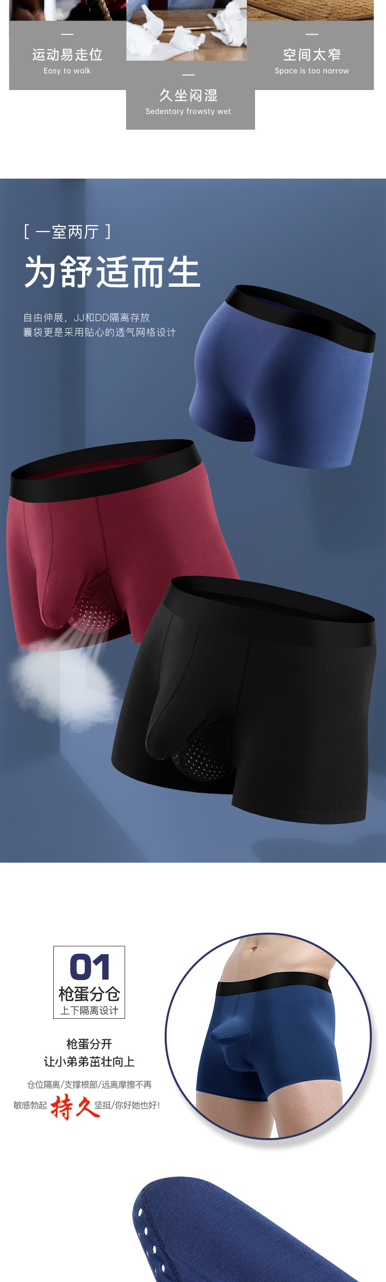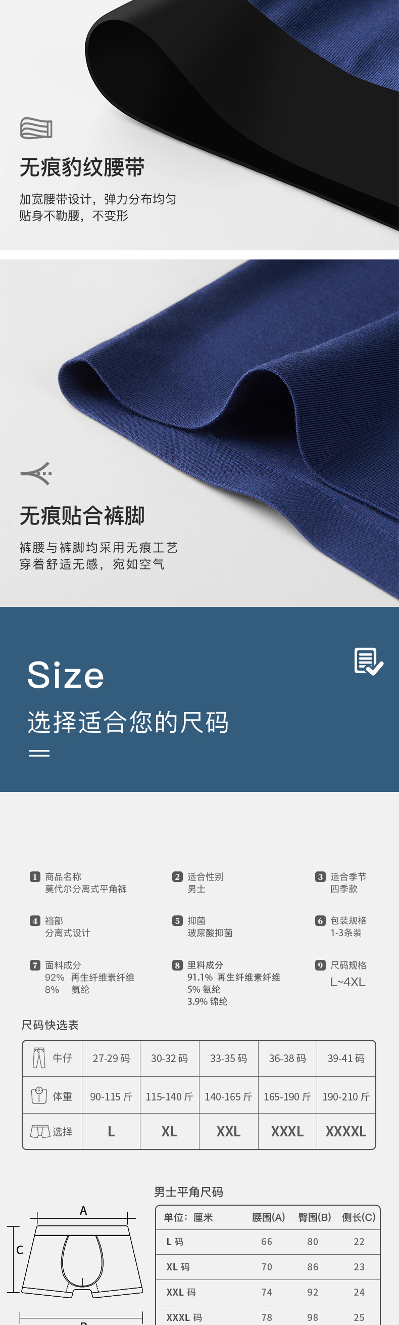 새로운 모달 분리형 무봉제 남성 속옷, 통기성 및 항균 소년 코끼리 코 복서 팬티 남성용스토어 가기