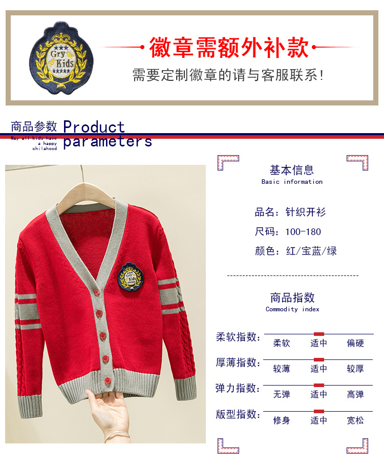 2023 봄과 가을 아동복 아동 니트 가디건 스웨터 소년 소녀 학생 교복 유치원 정원 옷 수업 코트스토어 가기