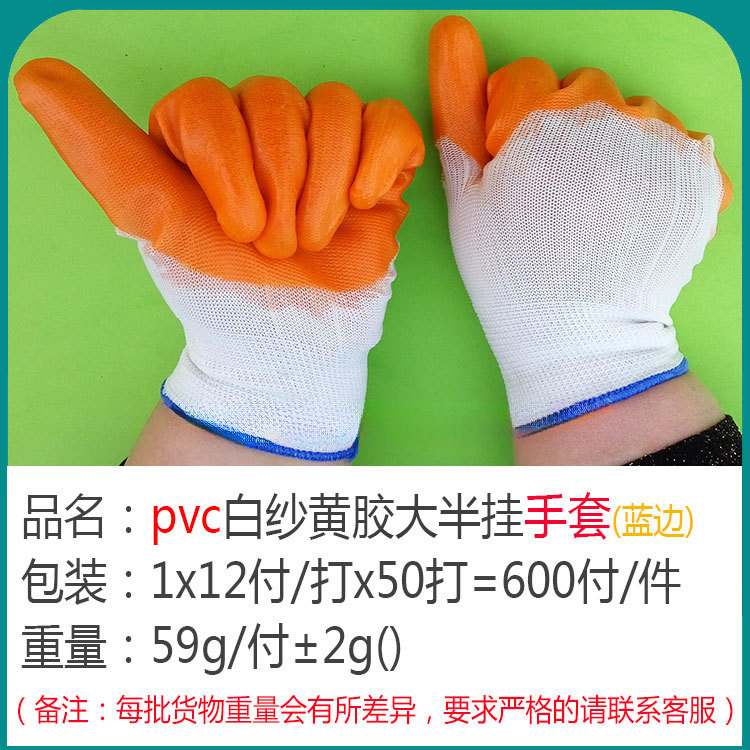 4#)人工锁边白纱黄pvc大半挂手套 1x12x50=600付/袋;