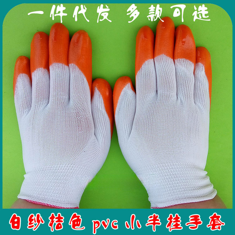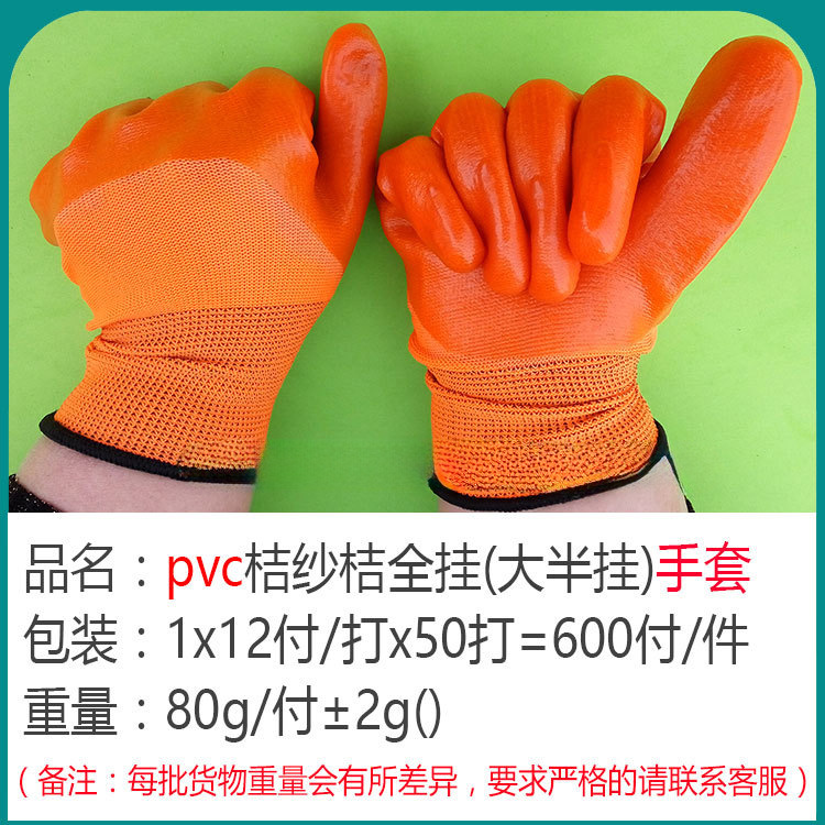 6#)人工锁边.白纱桔pvc大半挂手套 1x12x50=600付/袋;