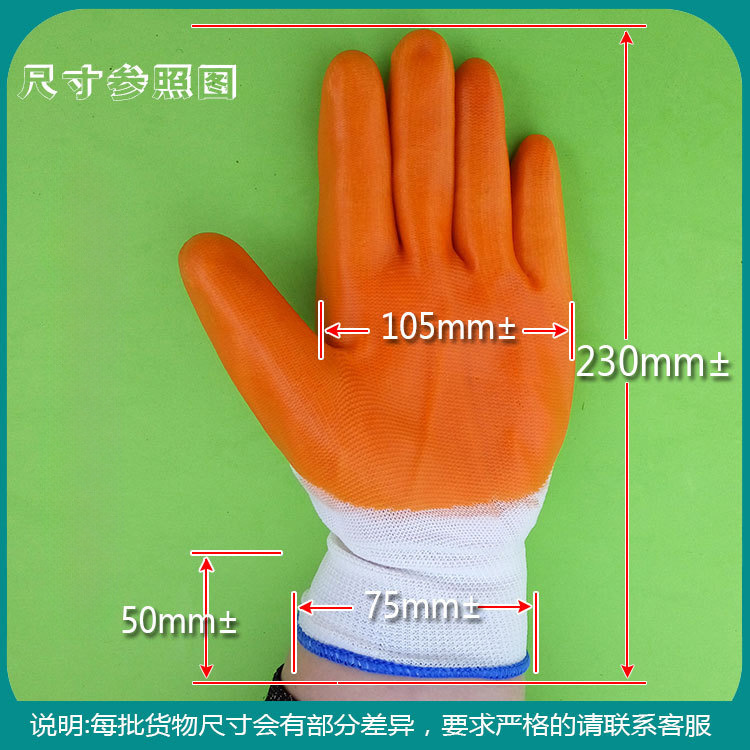 【产品名称】:13针尼龙白纱桔PVC浸胶手套;