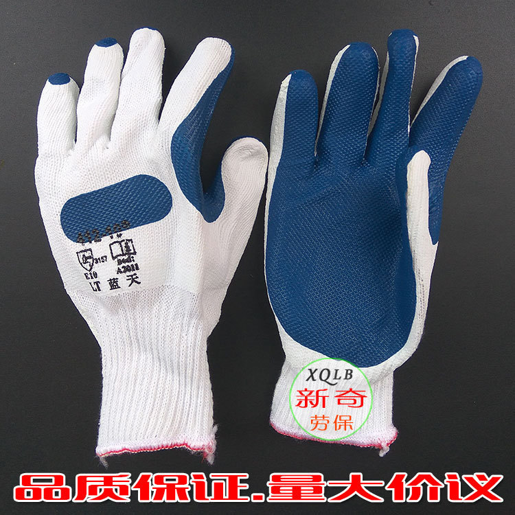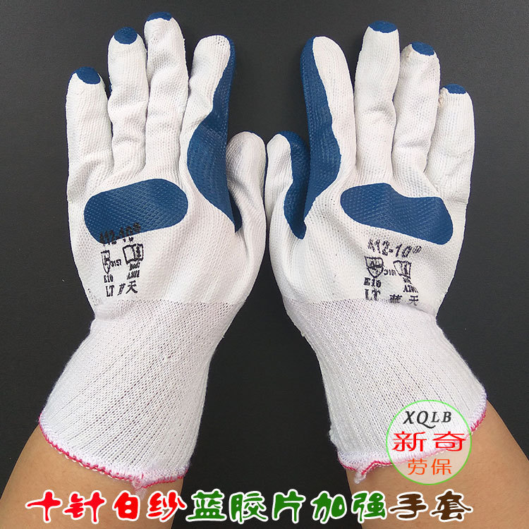 【商品名称】:蓝天十针白纱蓝胶片手背加强手套