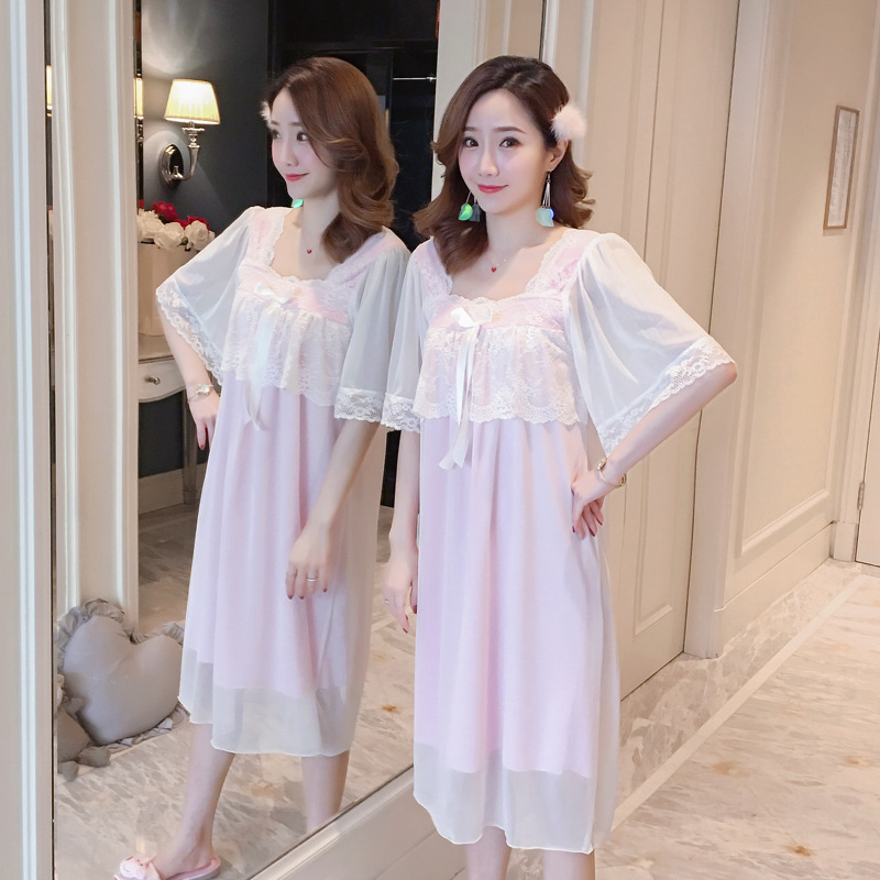 궁전 여름 새로운 잠옷 여자의 반팔 얇은 느슨한 간단한 모달 공주 가정 옷은 머리카락의 세대가 될 수 있습니다스토어 가기