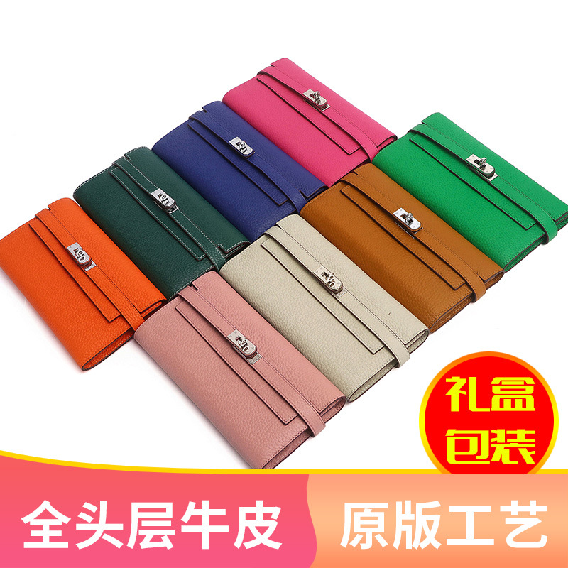 | 欧美时尚经典荔枝纹全头层牛皮手拿包女士真皮长款钱包钱夹 | |