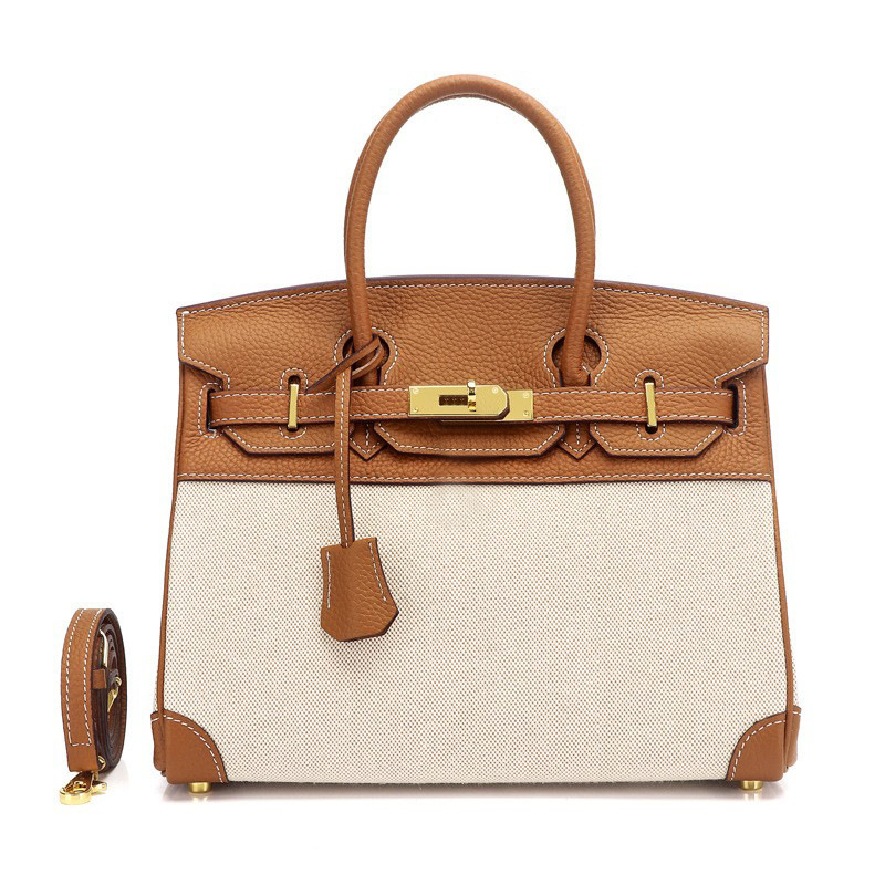 | 欧美新款真皮女包头层牛皮配帆布时尚铂金包女士手提包单肩包 | |
