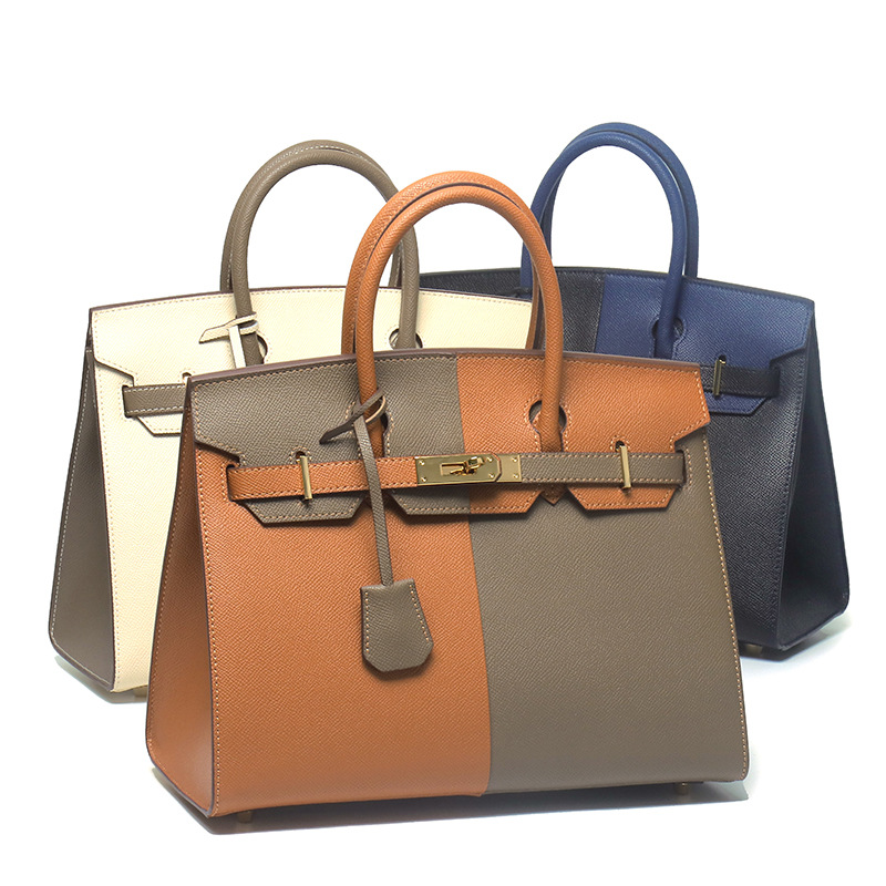 | A级手掌纹牛皮爆款女士撞色铂金包真皮外缝油边手提单肩包 | |