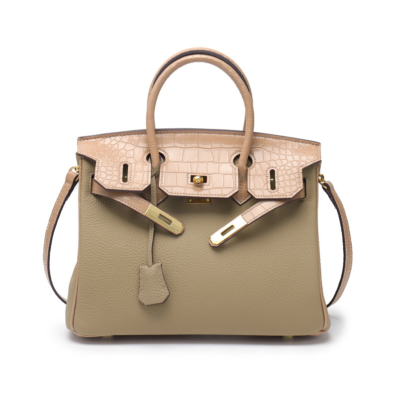 | 新款铂金包头层鳄鱼纹牛皮头层荔枝纹拼接手提单肩斜跨包真皮女包 | |